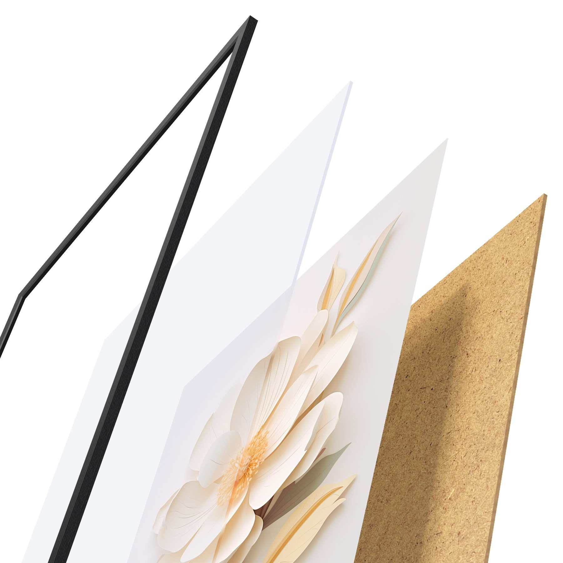 Plakatą sudaro rėmas, pleksiklas, atspausdintas vaizdas ir medžio drožlių plokštės pagrindas. Plakatą galima iš karto pakabinti ant sienos dėl kitoje pusėje esančių laikiklių.