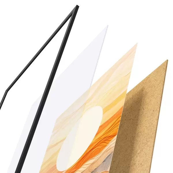 Plakatą sudaro rėmas, pleksiklas, atspausdintas vaizdas ir medžio drožlių plokštės pagrindas. Plakatą galima iš karto pakabinti ant sienos dėl kitoje pusėje esančių laikiklių.