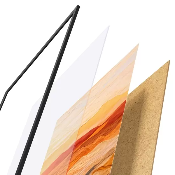 Plakatą sudaro rėmas, pleksiklas, atspausdintas vaizdas ir medžio drožlių plokštės pagrindas. Plakatą galima iš karto pakabinti ant sienos dėl kitoje pusėje esančių laikiklių.