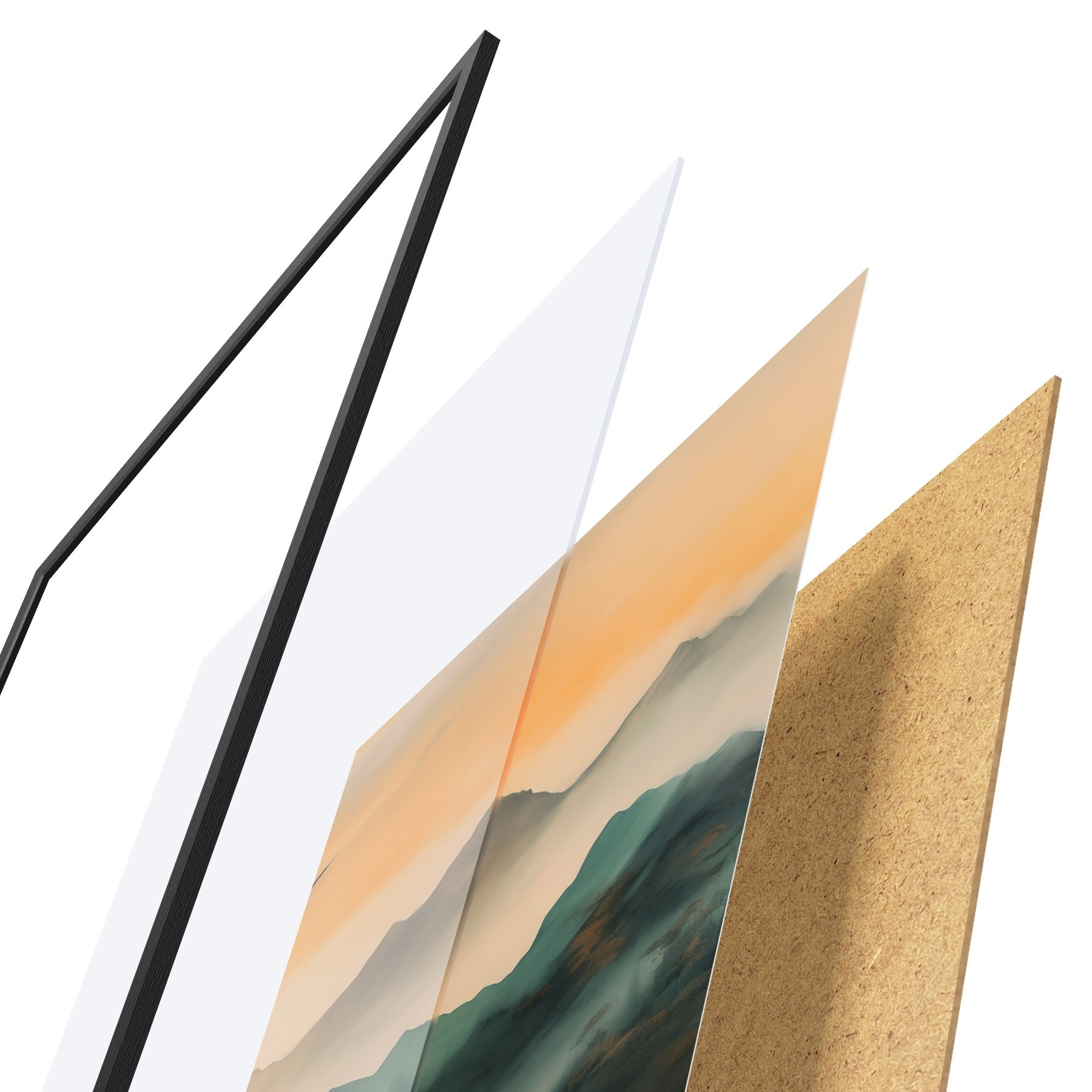 Plakatą sudaro rėmas, pleksiklas, atspausdintas vaizdas ir medžio drožlių plokštės pagrindas. Plakatą galima iš karto pakabinti ant sienos dėl kitoje pusėje esančių laikiklių.