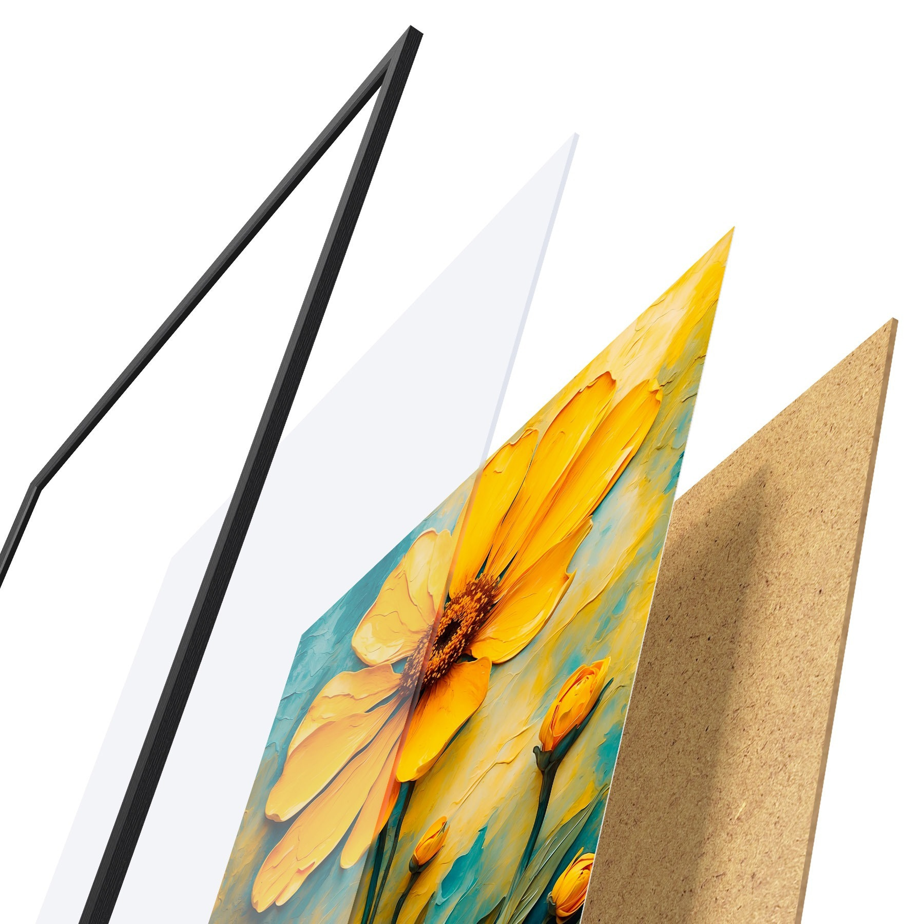 Plakatą sudaro rėmas, pleksiklas, atspausdintas vaizdas ir medžio drožlių plokštės pagrindas. Plakatą galima iš karto pakabinti ant sienos dėl kitoje pusėje esančių laikiklių.