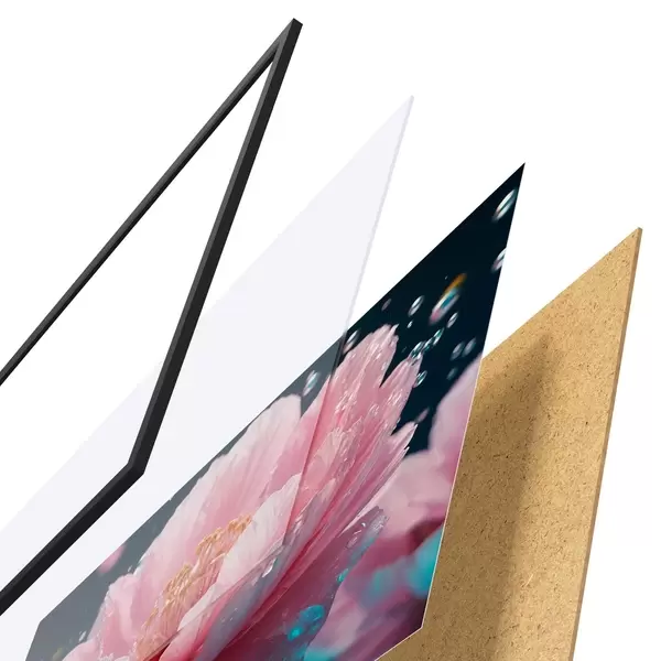 Plakatą sudaro rėmas, pleksiklas, atspausdintas vaizdas ir medžio drožlių plokštės pagrindas. Plakatą galima iš karto pakabinti ant sienos dėl kitoje pusėje esančių laikiklių.