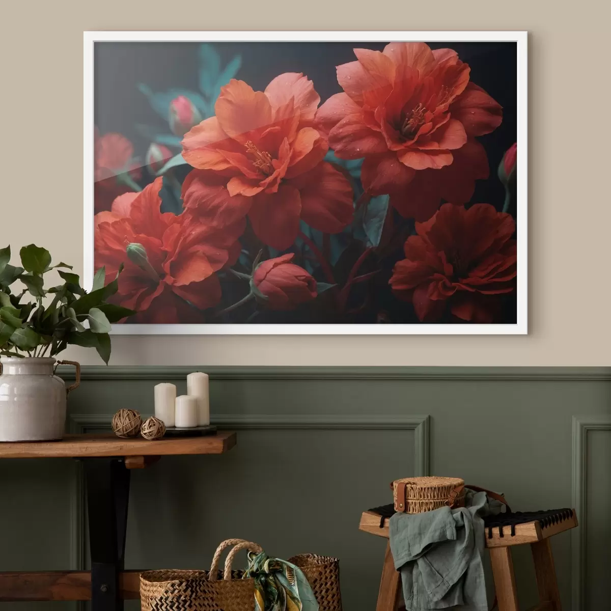Plakatas Raudonos gėlės tamsiame fone f43877