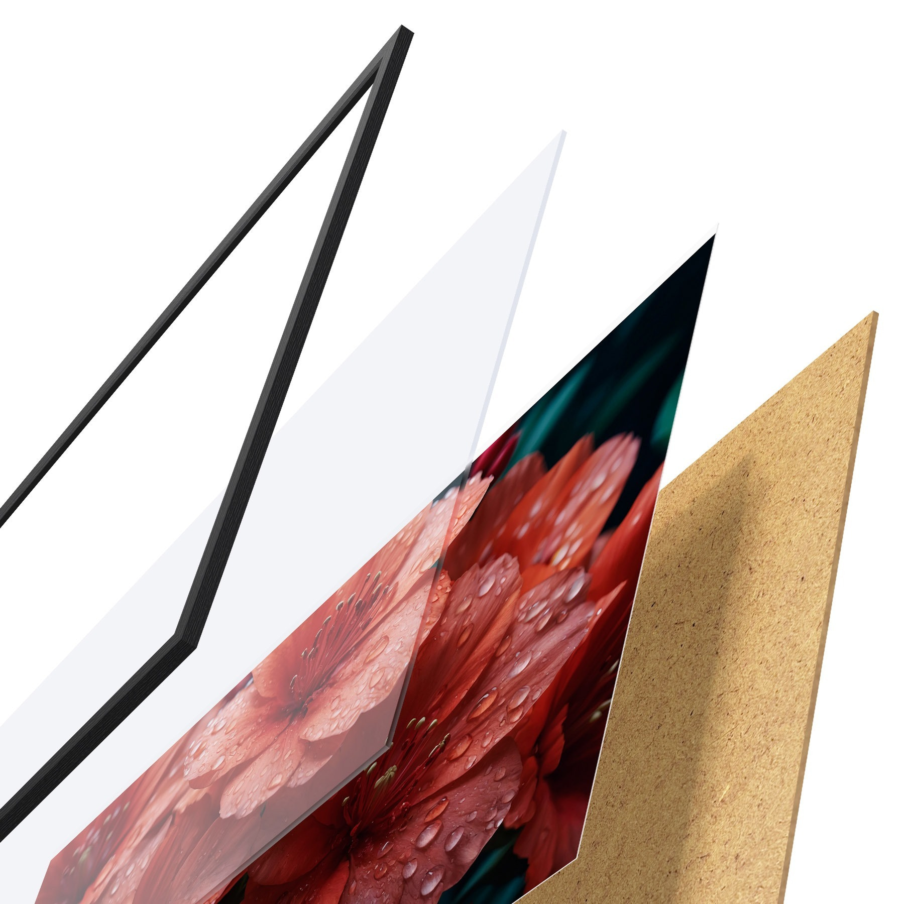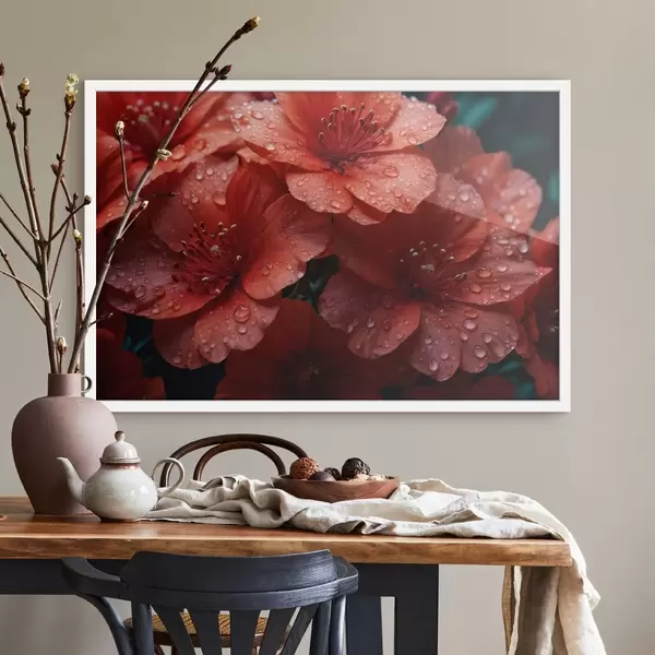 Plakatas Raudonos gėlės su rasos lašais Ne f43878
