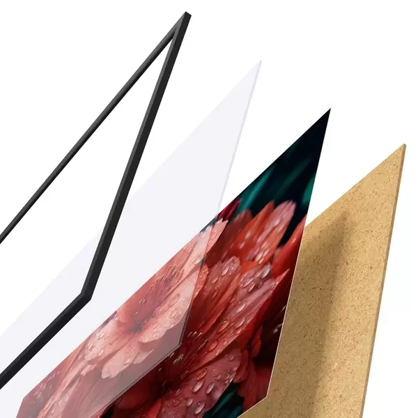 Plakatą sudaro rėmas, pleksiklas, atspausdintas vaizdas ir medžio drožlių plokštės pagrindas. Plakatą galima iš karto pakabinti ant sienos dėl kitoje pusėje esančių laikiklių.