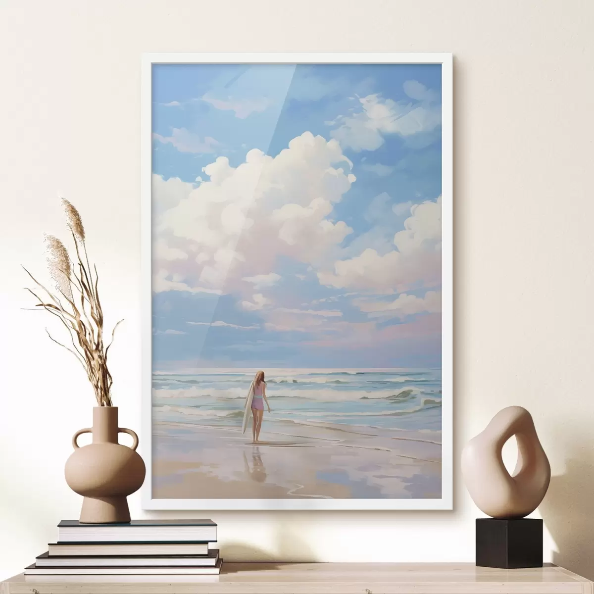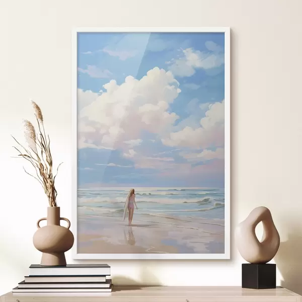 Plakatas Mergina banglenčių sportas vandenyne, vasara, bangos, akrilo stilius Ne f43882