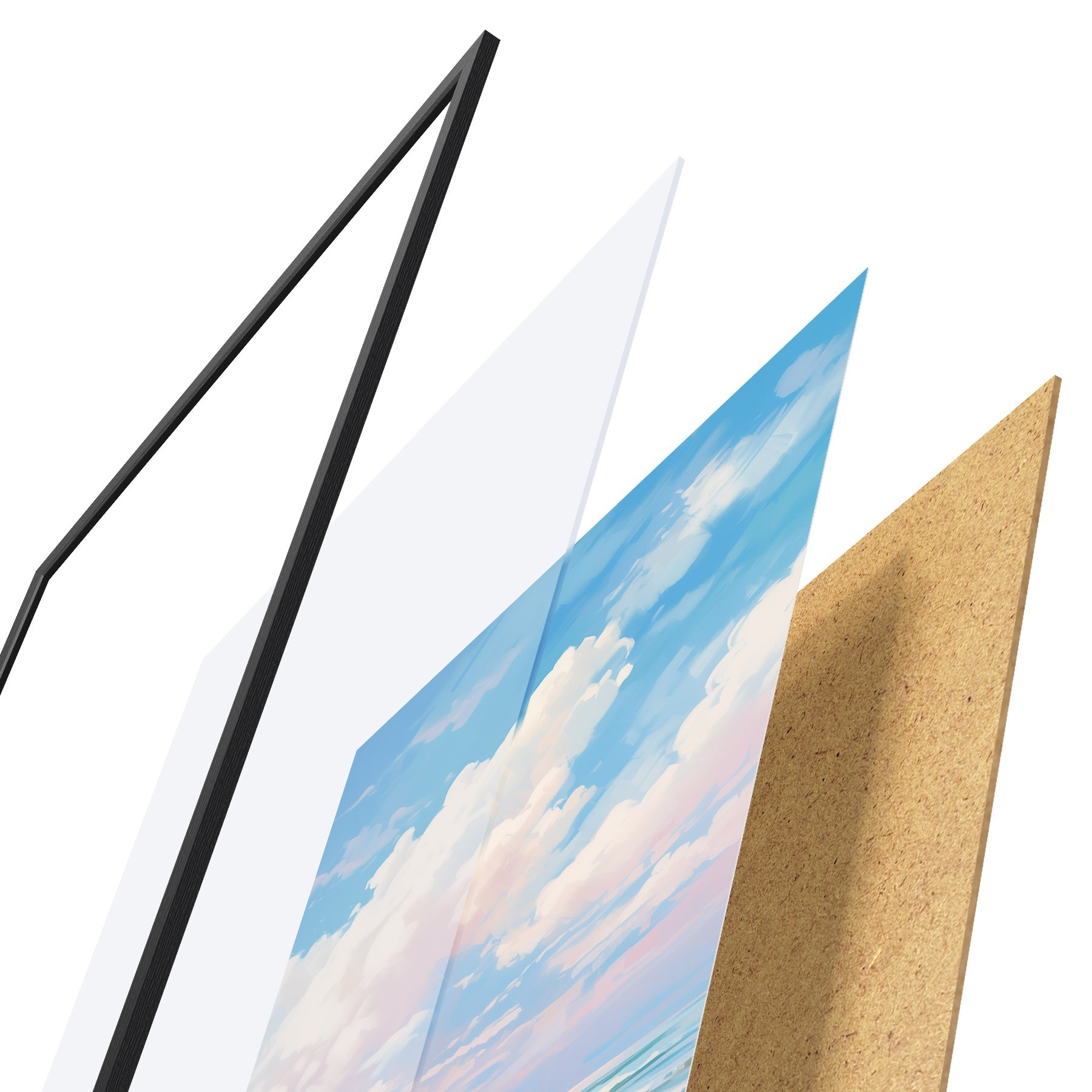 Plakatą sudaro rėmas, pleksiklas, atspausdintas vaizdas ir medžio drožlių plokštės pagrindas. Plakatą galima iš karto pakabinti ant sienos dėl kitoje pusėje esančių laikiklių.