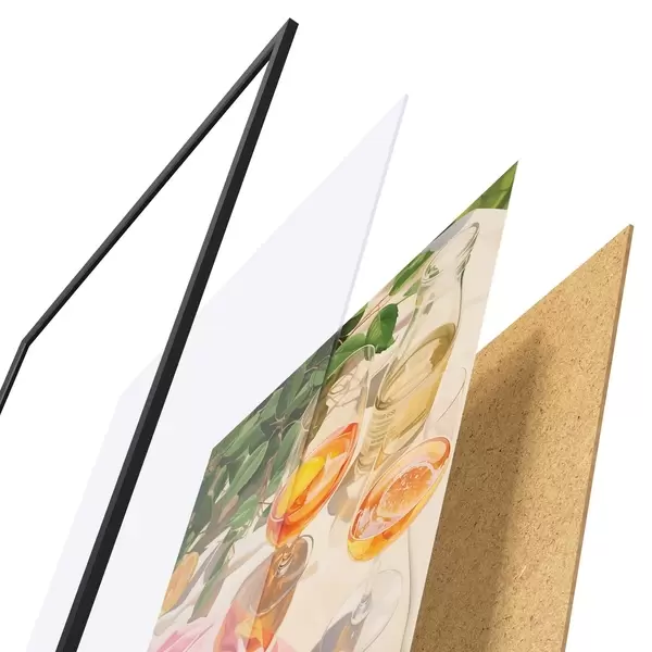 Plakatą sudaro rėmas, pleksiklas, atspausdintas vaizdas ir medžio drožlių plokštės pagrindas. Plakatą galima iš karto pakabinti ant sienos dėl kitoje pusėje esančių laikiklių.