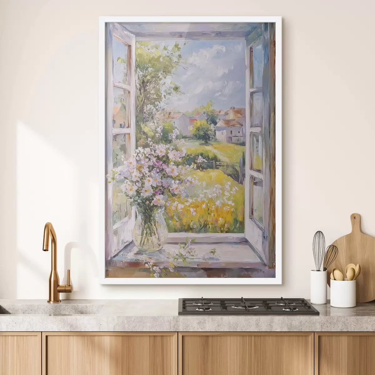 Plakatas Vasara kaime, kaimiškas, aliejinis piešinys, gėlės vazoje Ne f43889