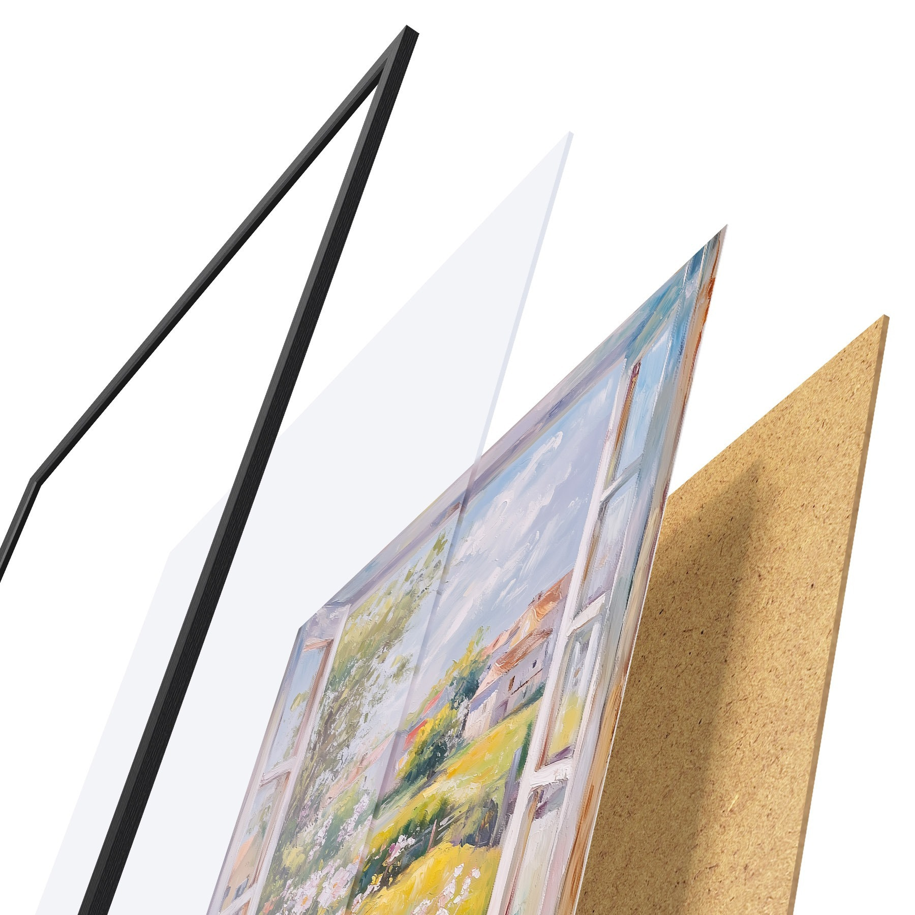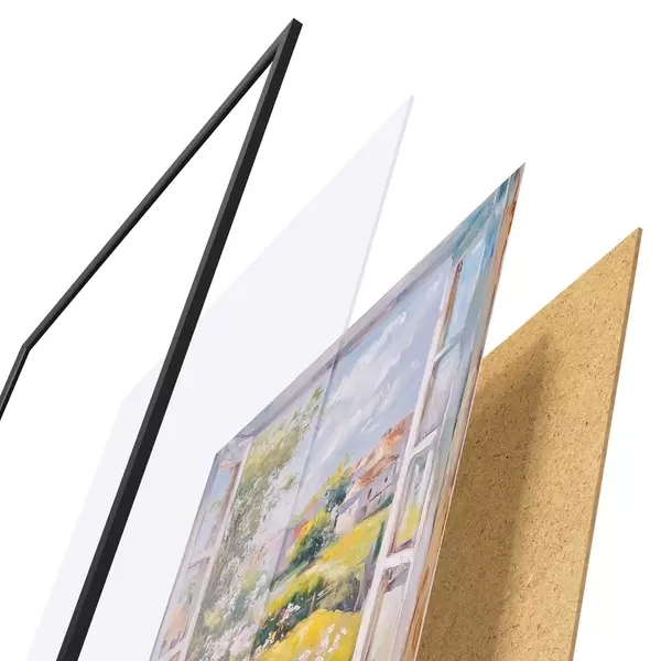 Plakatą sudaro rėmas, pleksiklas, atspausdintas vaizdas ir medžio drožlių plokštės pagrindas. Plakatą galima iš karto pakabinti ant sienos dėl kitoje pusėje esančių laikiklių.