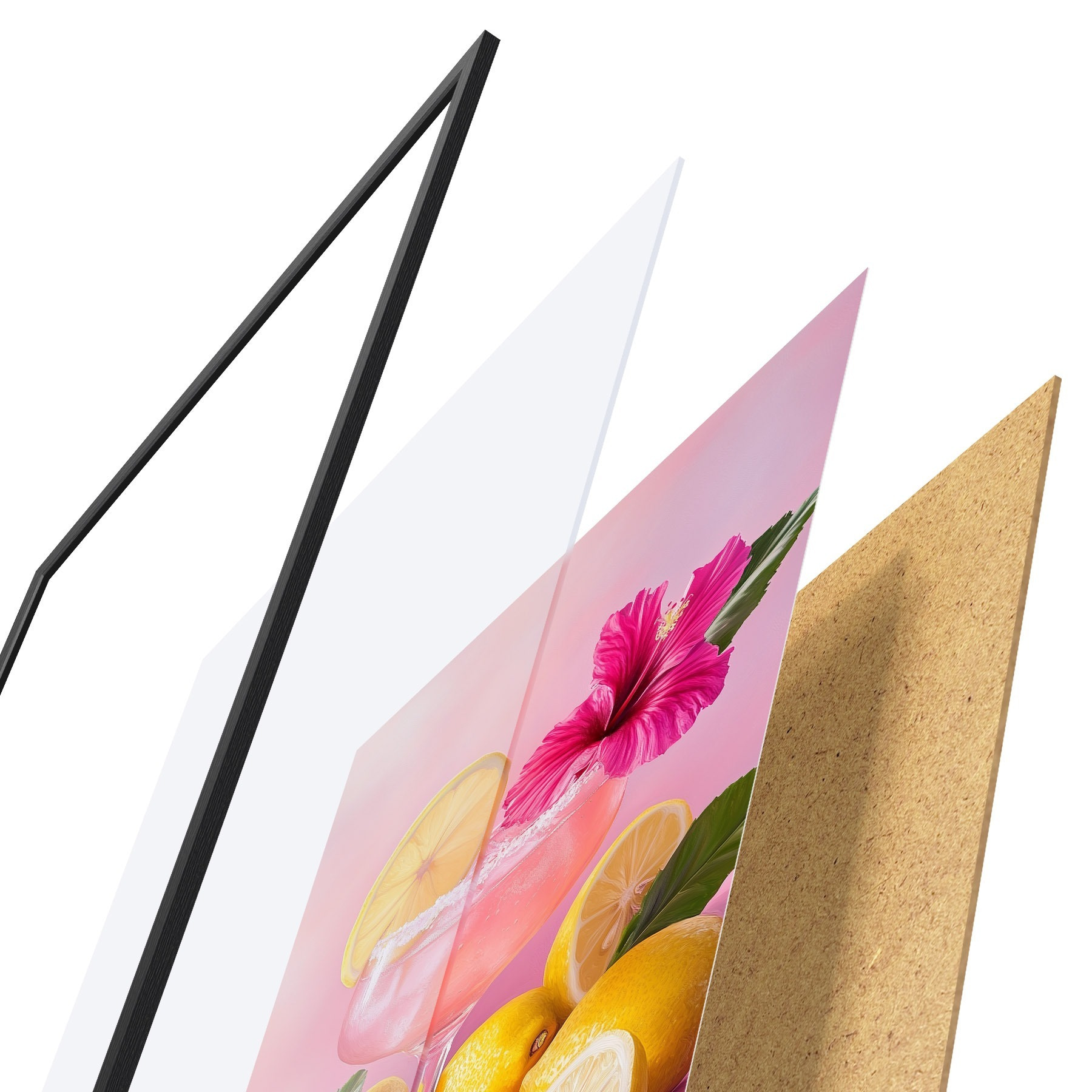 Plakatas Vasaros kokteilis su gėlėmis ir citrinomis, rožinės spalvos, akvarelės stilius f43895
