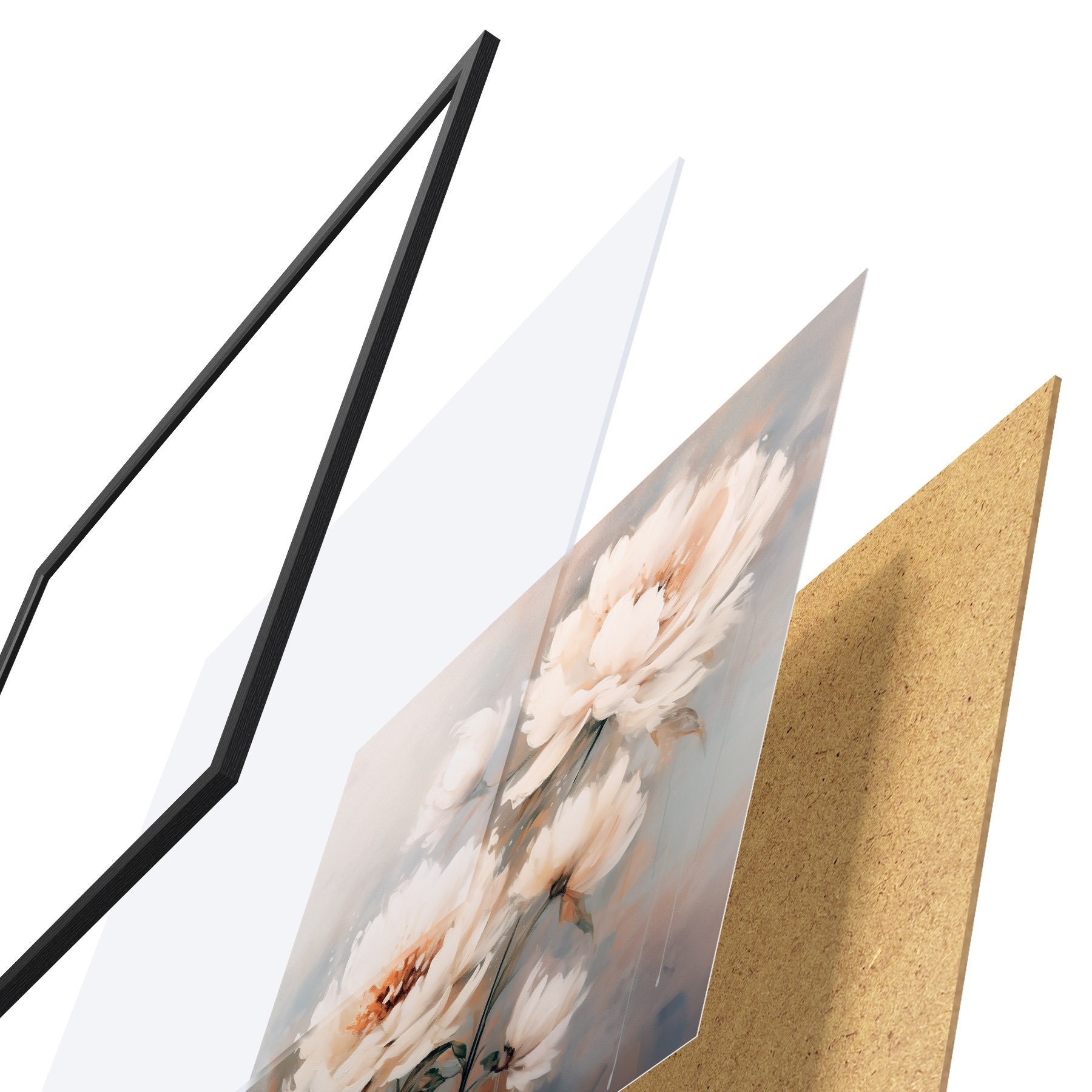 Plakatą sudaro rėmas, pleksiklas, atspausdintas vaizdas ir medžio drožlių plokštės pagrindas. Plakatą galima iš karto pakabinti ant sienos dėl kitoje pusėje esančių laikiklių.