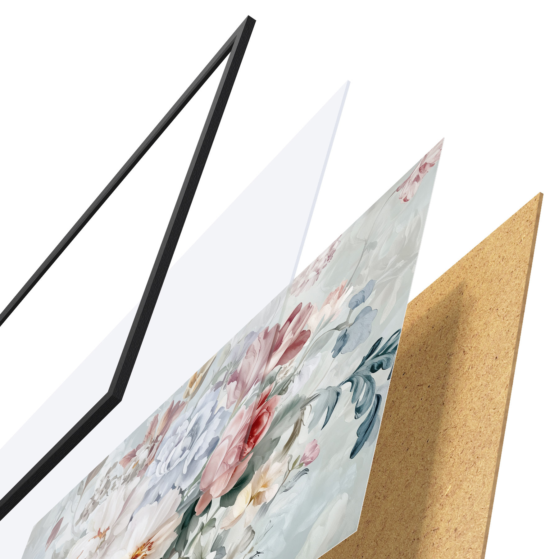 Plakatą sudaro rėmas, pleksiklas, atspausdintas vaizdas ir medžio drožlių plokštės pagrindas. Plakatą galima iš karto pakabinti ant sienos dėl kitoje pusėje esančių laikiklių.