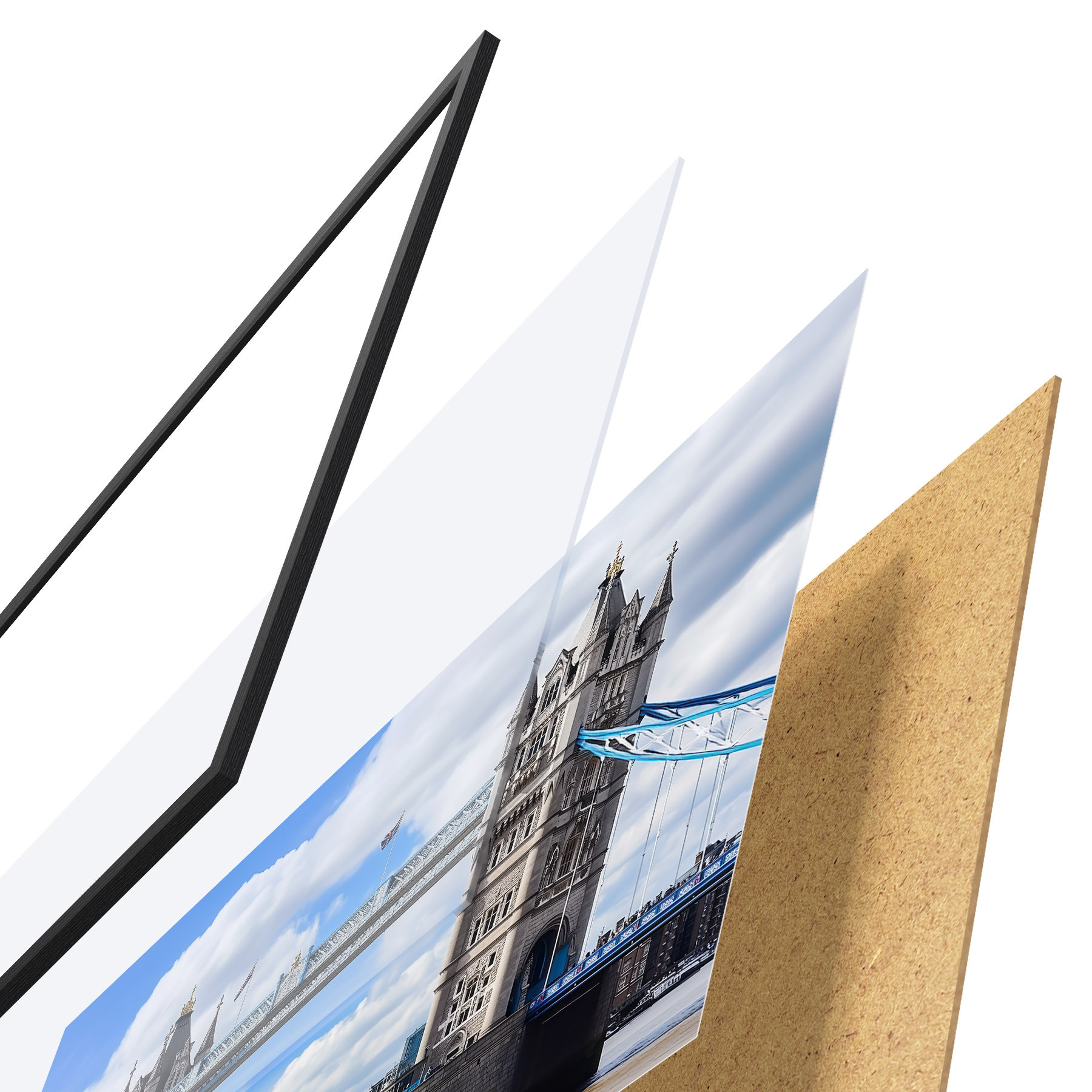 Plakatą sudaro rėmas, pleksiklas, atspausdintas vaizdas ir medžio drožlių plokštės pagrindas. Plakatą galima iš karto pakabinti ant sienos dėl kitoje pusėje esančių laikiklių.