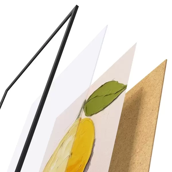 Plakatą sudaro rėmas, pleksiklas, atspausdintas vaizdas ir medžio drožlių plokštės pagrindas. Plakatą galima iš karto pakabinti ant sienos dėl kitoje pusėje esančių laikiklių.