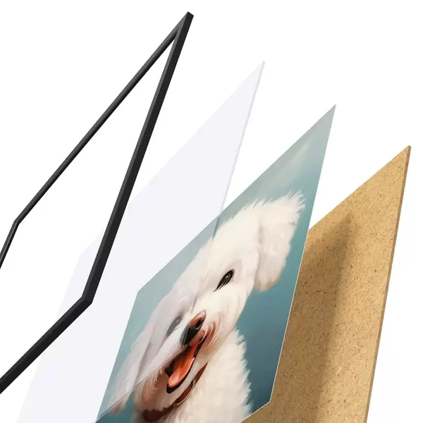 Plakatą sudaro rėmas, pleksiklas, atspausdintas vaizdas ir medžio drožlių plokštės pagrindas. Plakatą galima iš karto pakabinti ant sienos dėl kitoje pusėje esančių laikiklių.