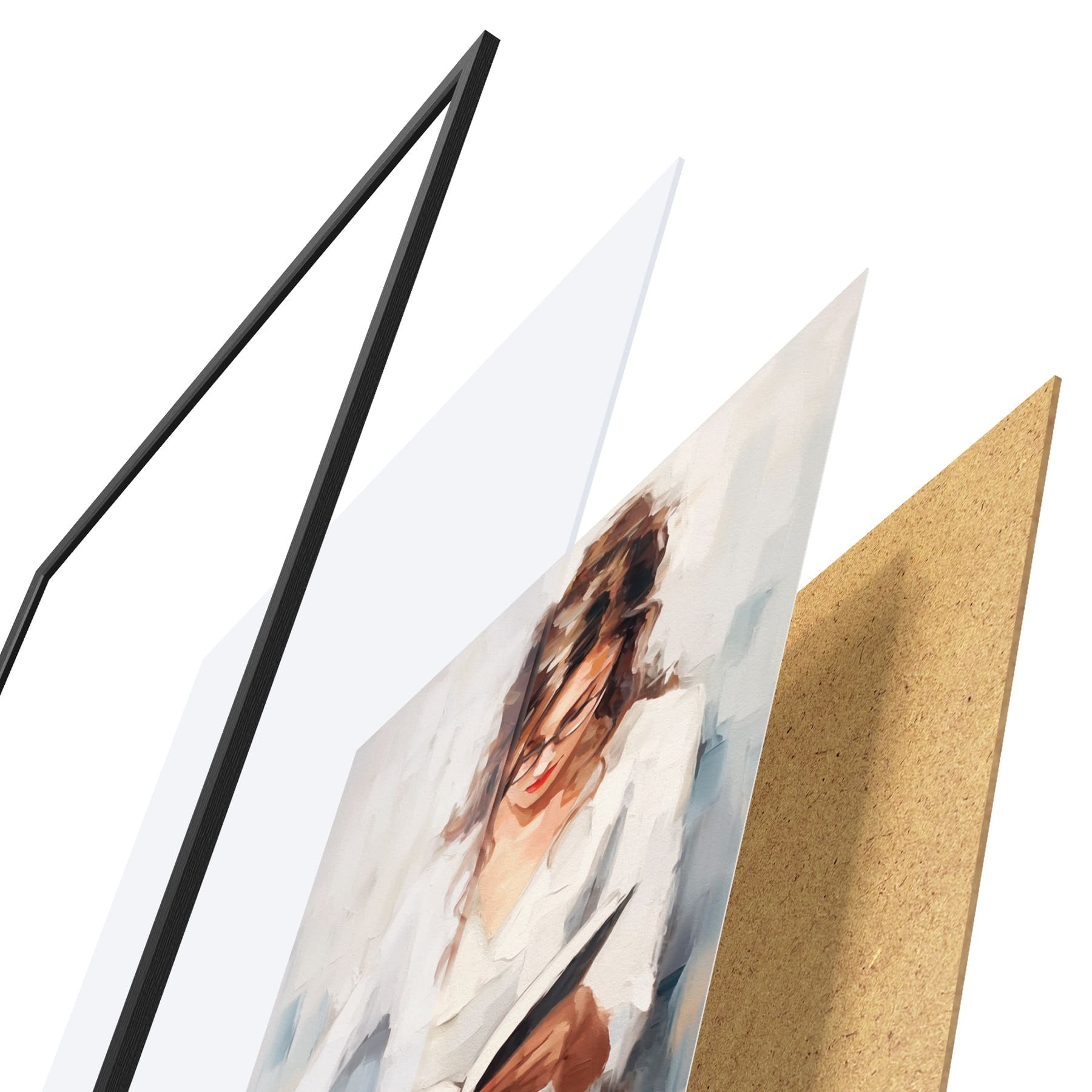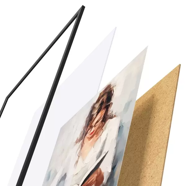 Plakatą sudaro rėmas, pleksiklas, atspausdintas vaizdas ir medžio drožlių plokštės pagrindas. Plakatą galima iš karto pakabinti ant sienos dėl kitoje pusėje esančių laikiklių.