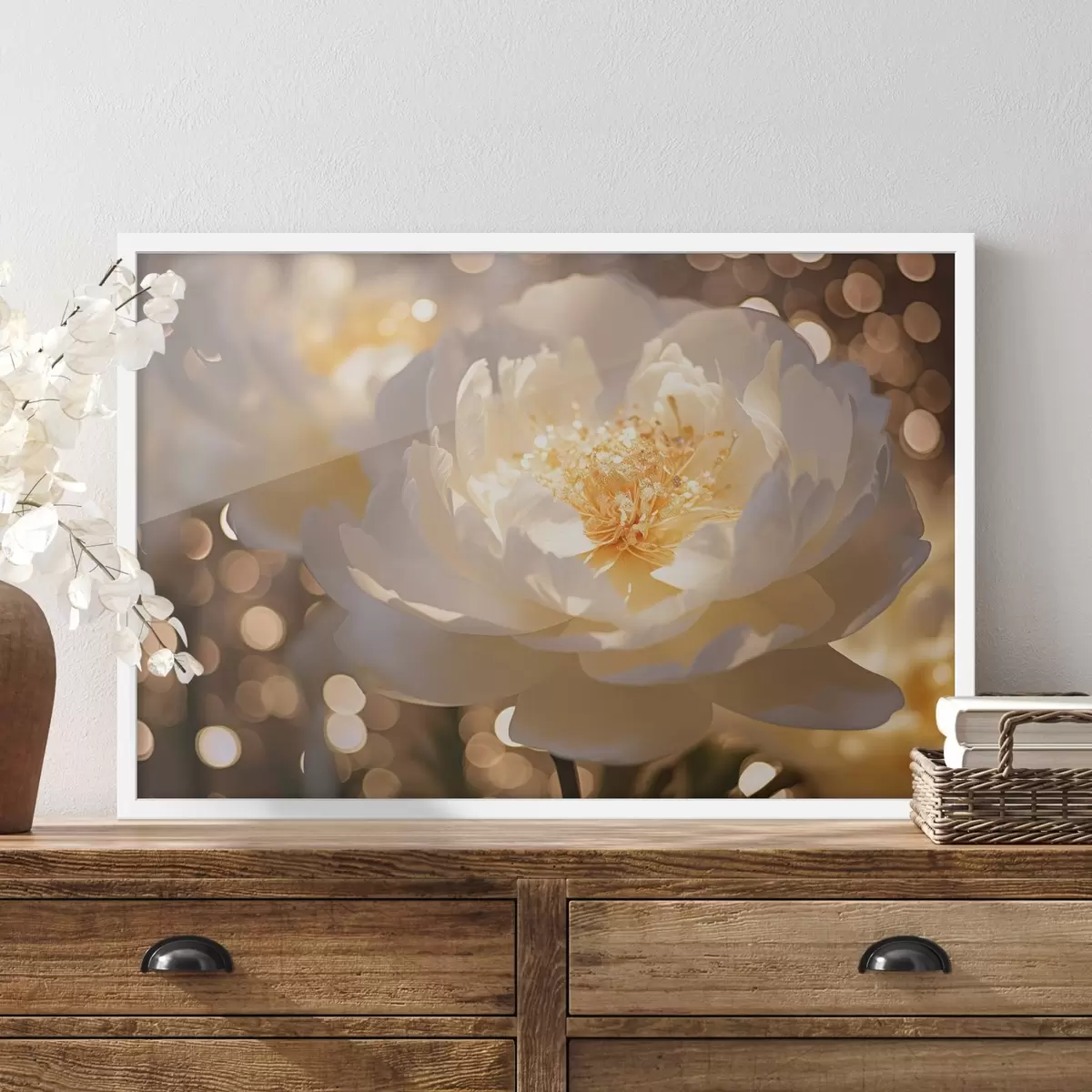 Plakatas Balta gėlė neryškiame fone f43947