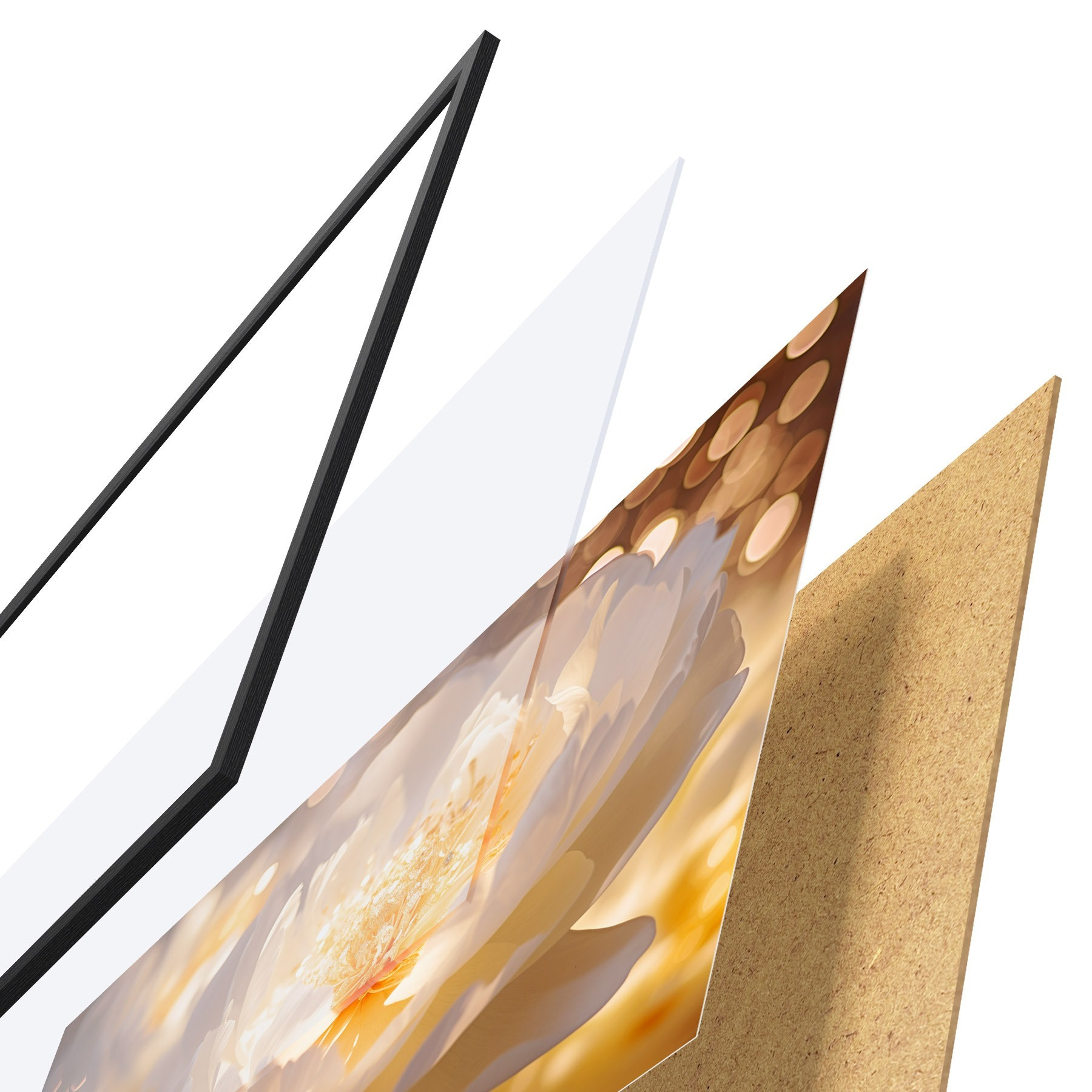 Plakatą sudaro rėmas, pleksiklas, atspausdintas vaizdas ir medžio drožlių plokštės pagrindas. Plakatą galima iš karto pakabinti ant sienos dėl kitoje pusėje esančių laikiklių.