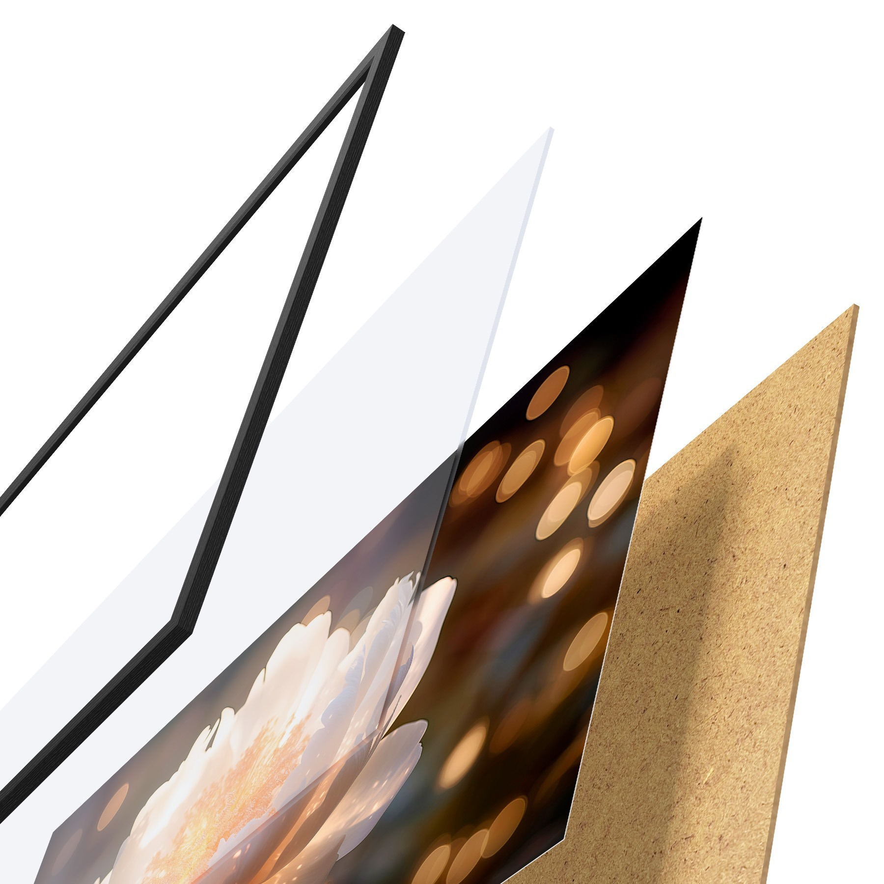 Plakatą sudaro rėmas, pleksiklas, atspausdintas vaizdas ir medžio drožlių plokštės pagrindas. Plakatą galima iš karto pakabinti ant sienos dėl kitoje pusėje esančių laikiklių.