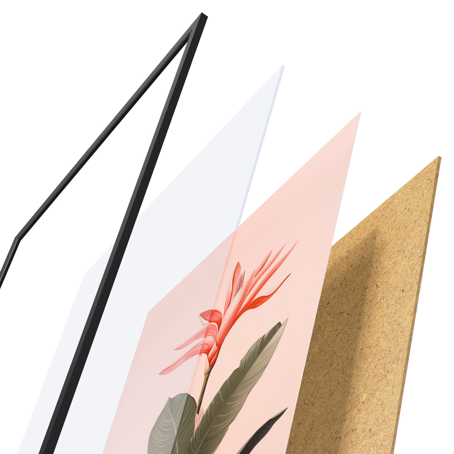 Plakatą sudaro rėmas, pleksiklas, atspausdintas vaizdas ir medžio drožlių plokštės pagrindas. Plakatą galima iš karto pakabinti ant sienos dėl kitoje pusėje esančių laikiklių.