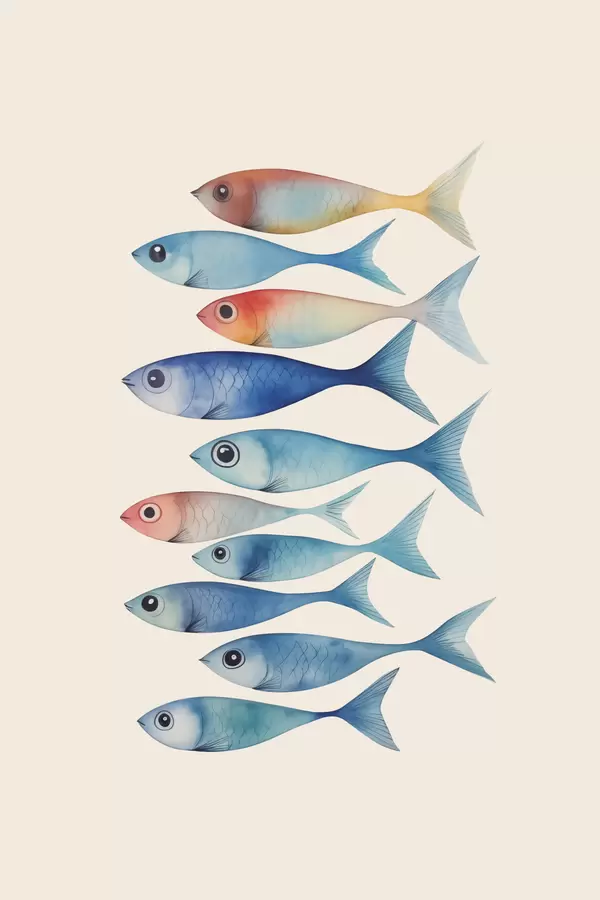 Plakatas Žuvų minimalizmo imitacija akvarelė f43960