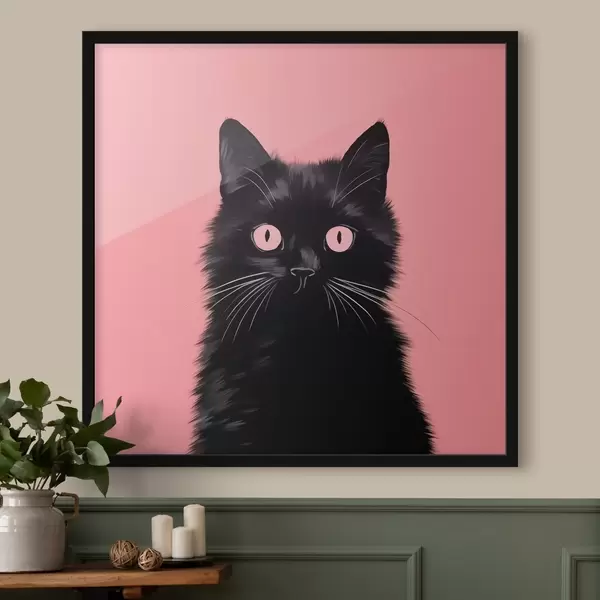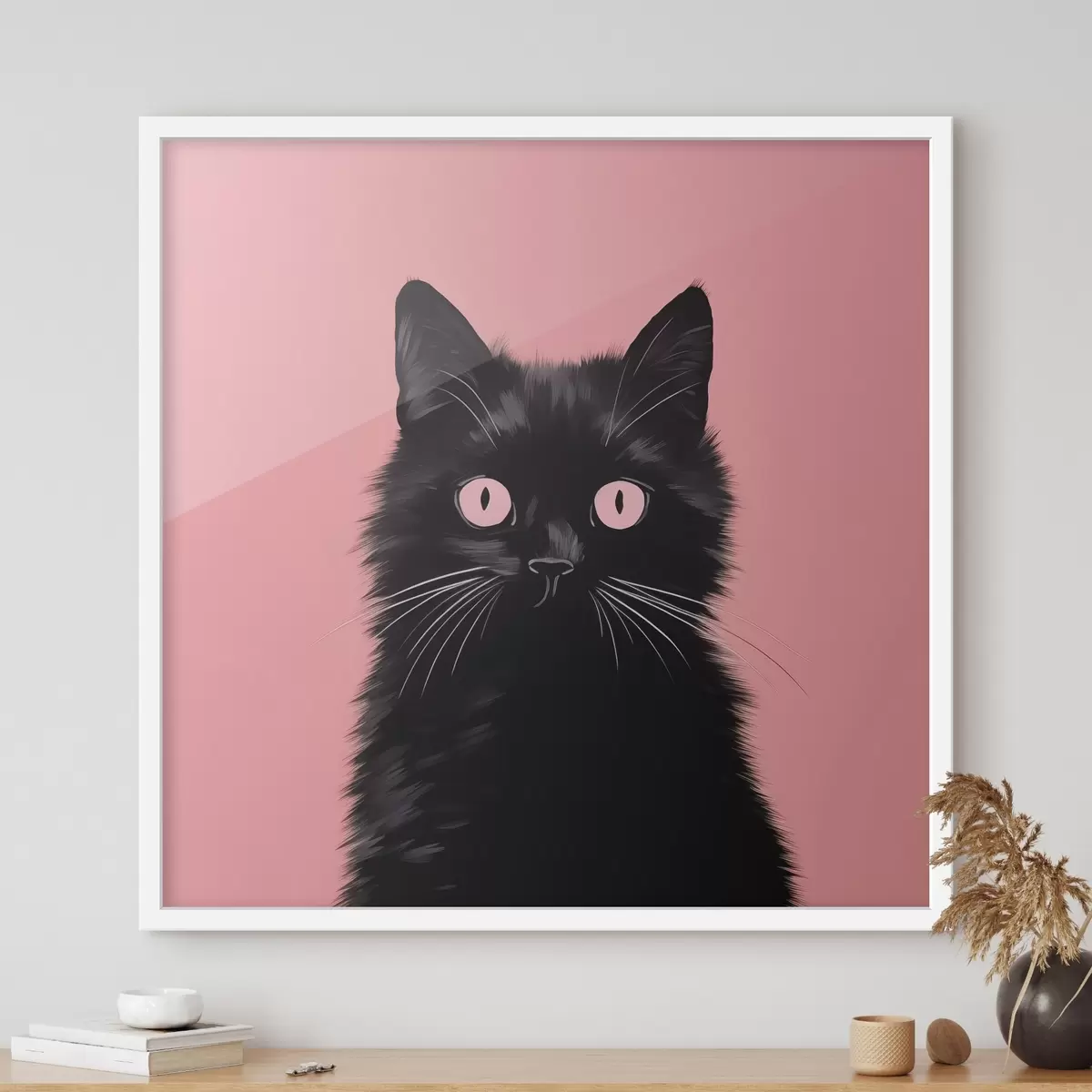 Plakatas Juoda katė rožinės spalvos Ne f43963