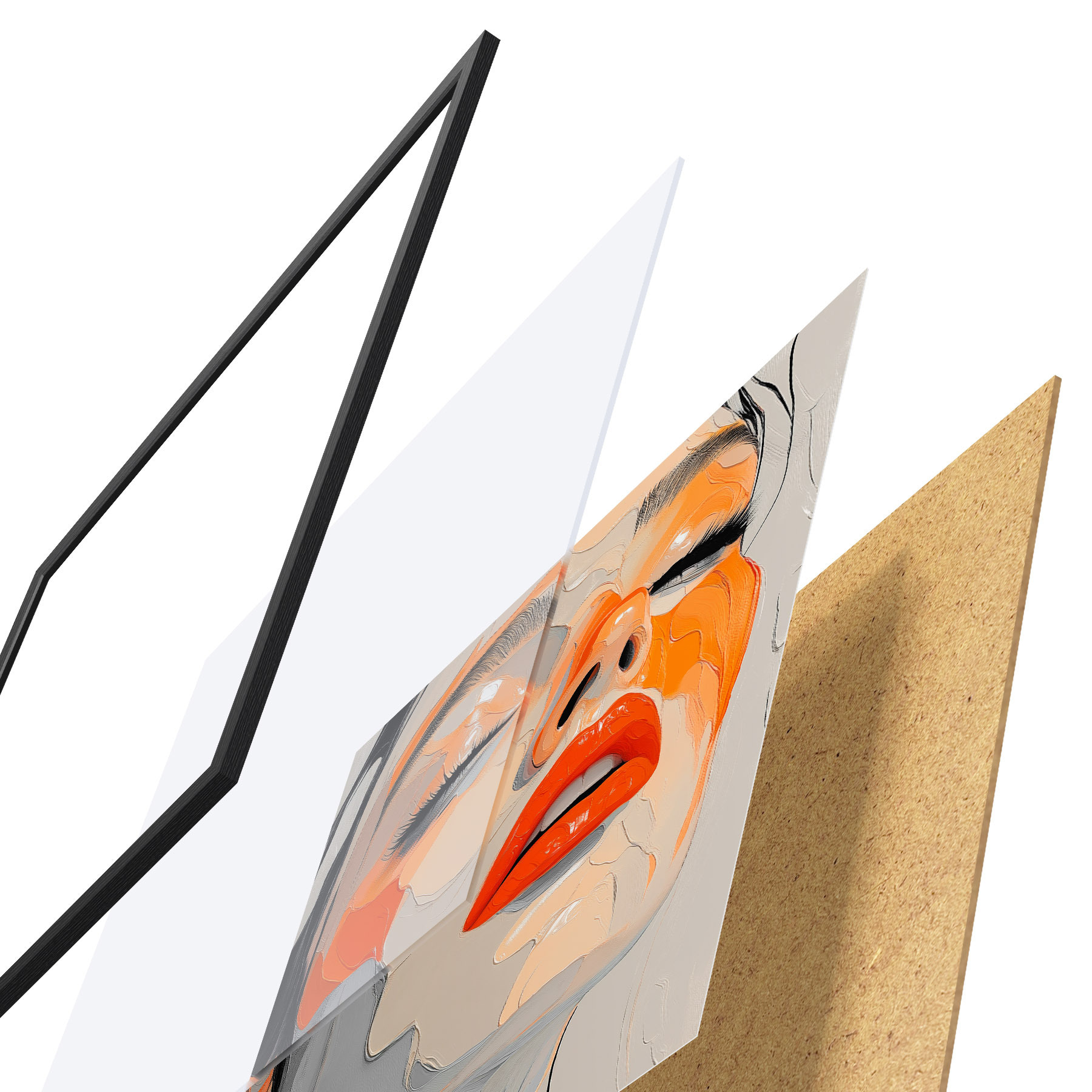 Plakatą sudaro rėmas, pleksiklas, atspausdintas vaizdas ir medžio drožlių plokštės pagrindas. Plakatą galima iš karto pakabinti ant sienos dėl kitoje pusėje esančių laikiklių.