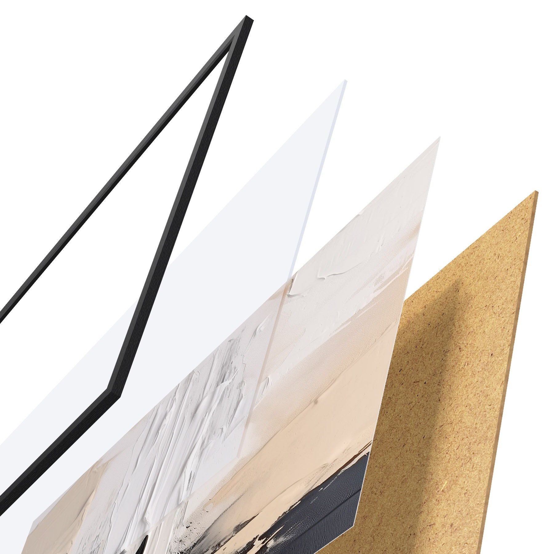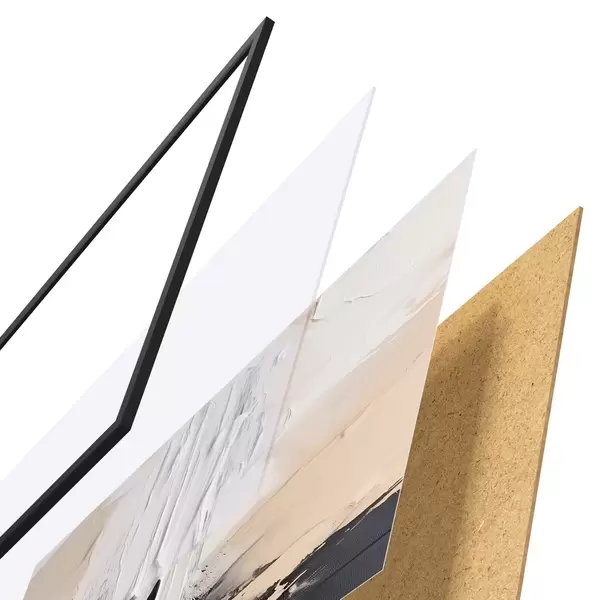 Plakatą sudaro rėmas, pleksiklas, atspausdintas vaizdas ir medžio drožlių plokštės pagrindas. Plakatą galima iš karto pakabinti ant sienos dėl kitoje pusėje esančių laikiklių.
