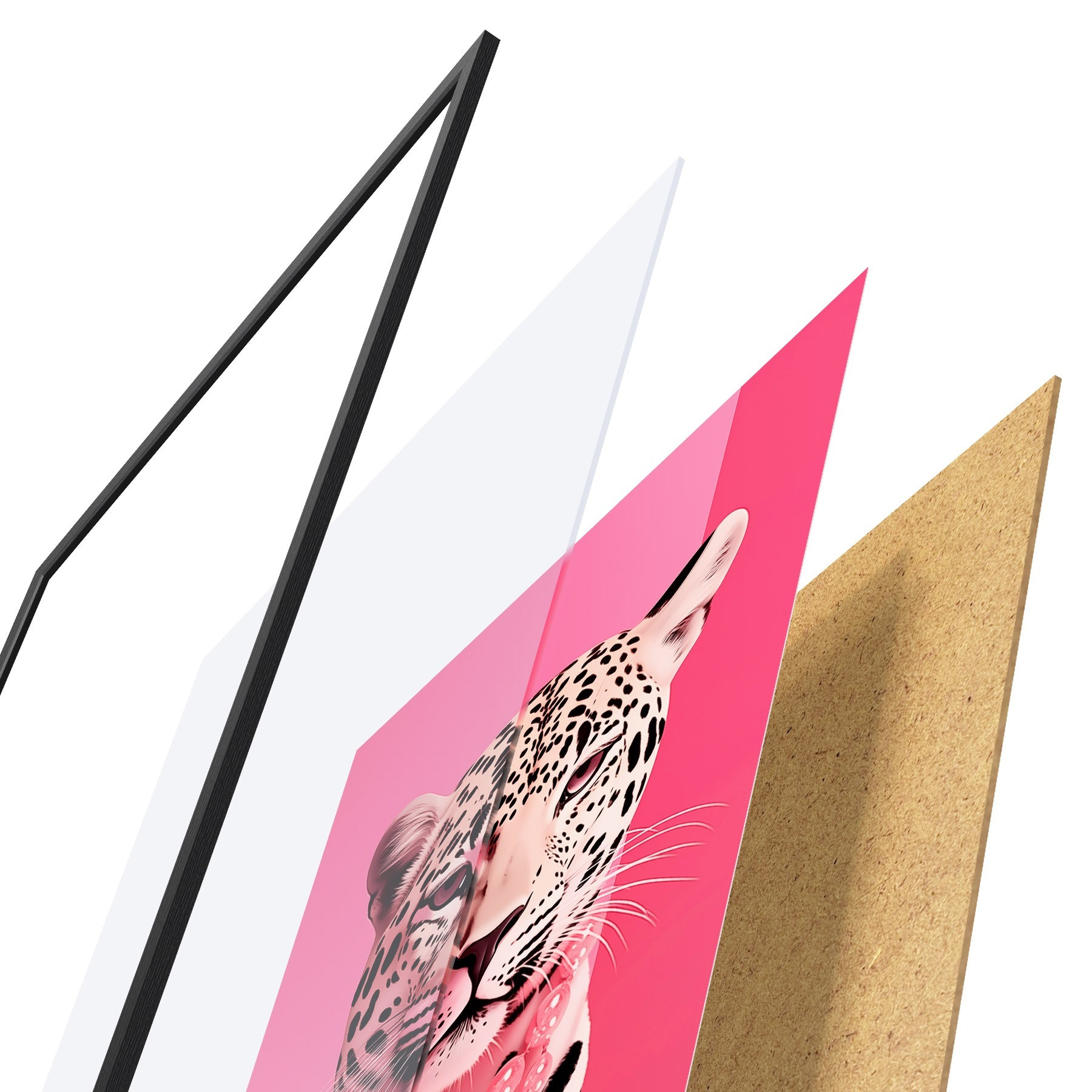 Plakatą sudaro rėmas, pleksiklas, atspausdintas vaizdas ir medžio drožlių plokštės pagrindas. Plakatą galima iš karto pakabinti ant sienos dėl kitoje pusėje esančių laikiklių.