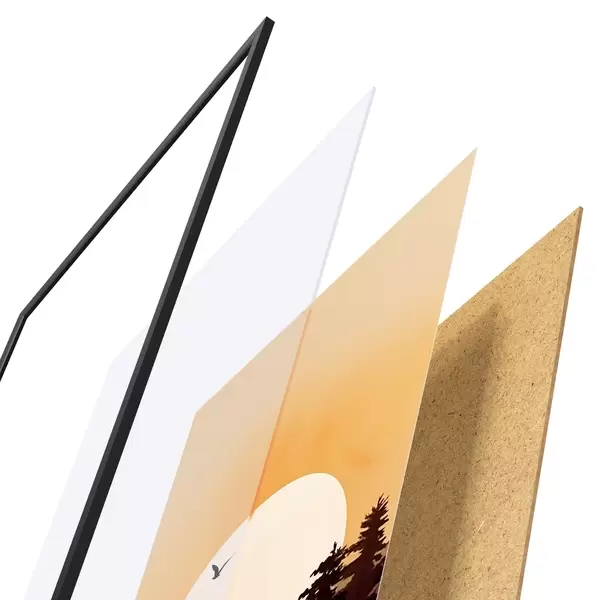 Plakatą sudaro rėmas, pleksiklas, atspausdintas vaizdas ir medžio drožlių plokštės pagrindas. Plakatą galima iš karto pakabinti ant sienos dėl kitoje pusėje esančių laikiklių.