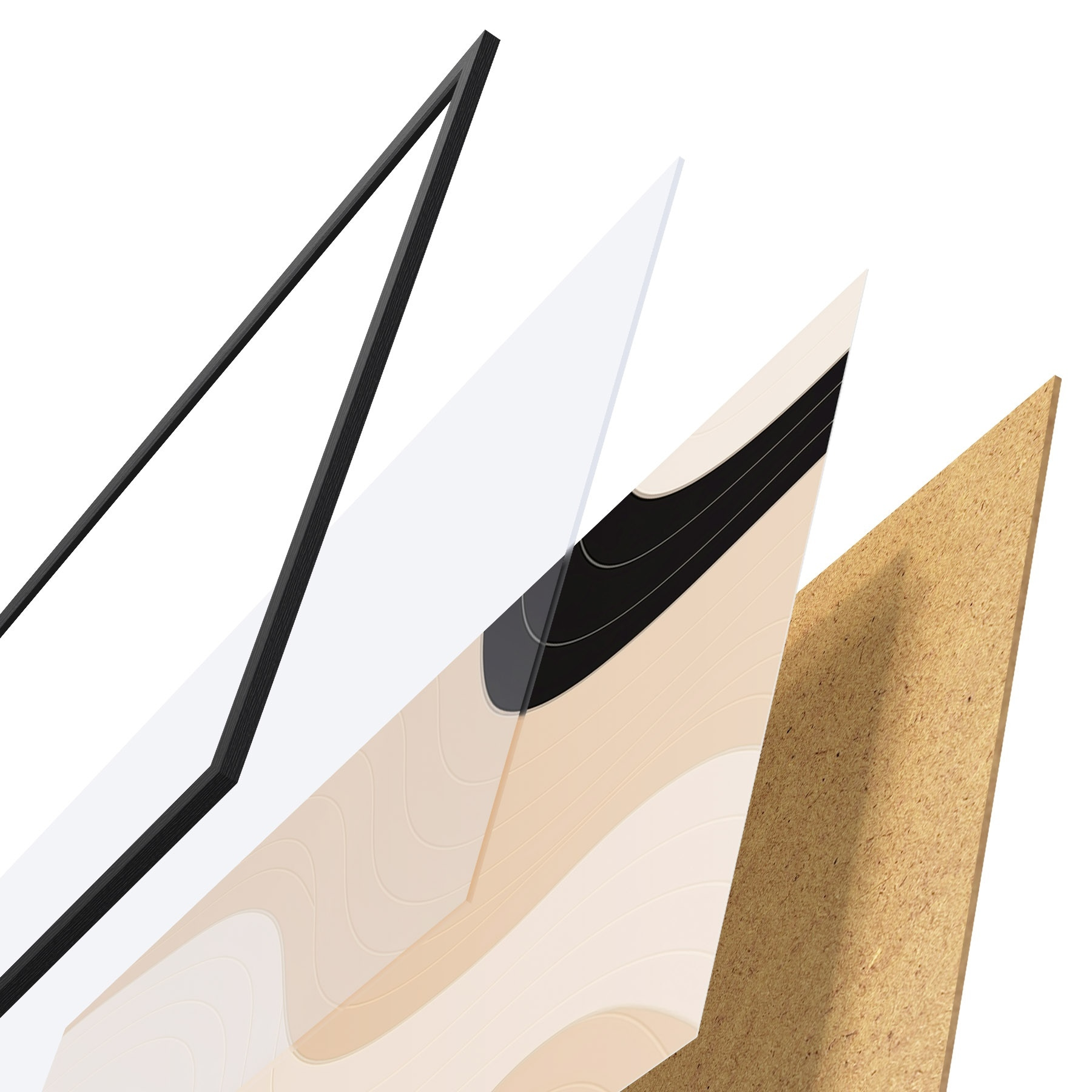 Plakatą sudaro rėmas, pleksiklas, atspausdintas vaizdas ir medžio drožlių plokštės pagrindas. Plakatą galima iš karto pakabinti ant sienos dėl kitoje pusėje esančių laikiklių.