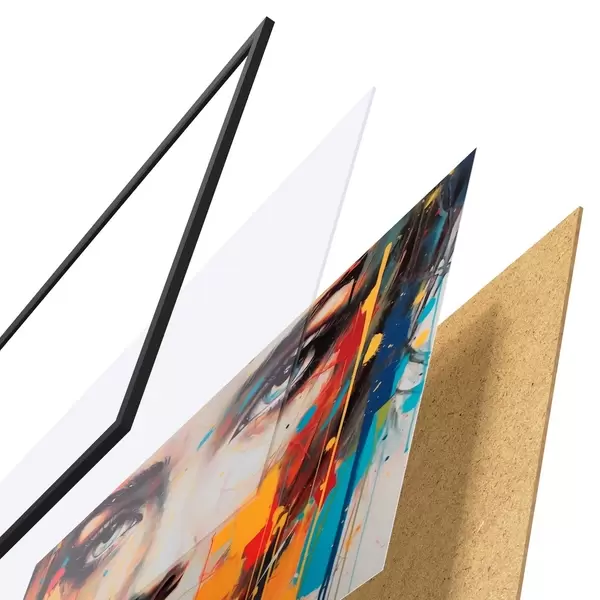 Plakatą sudaro rėmas, pleksiklas, atspausdintas vaizdas ir medžio drožlių plokštės pagrindas. Plakatą galima iš karto pakabinti ant sienos dėl kitoje pusėje esančių laikiklių.