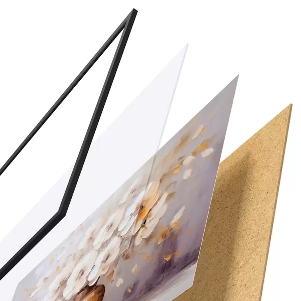 Plakatą sudaro rėmas, pleksiklas, atspausdintas vaizdas ir medžio drožlių plokštės pagrindas. Plakatą galima iš karto pakabinti ant sienos dėl kitoje pusėje esančių laikiklių.