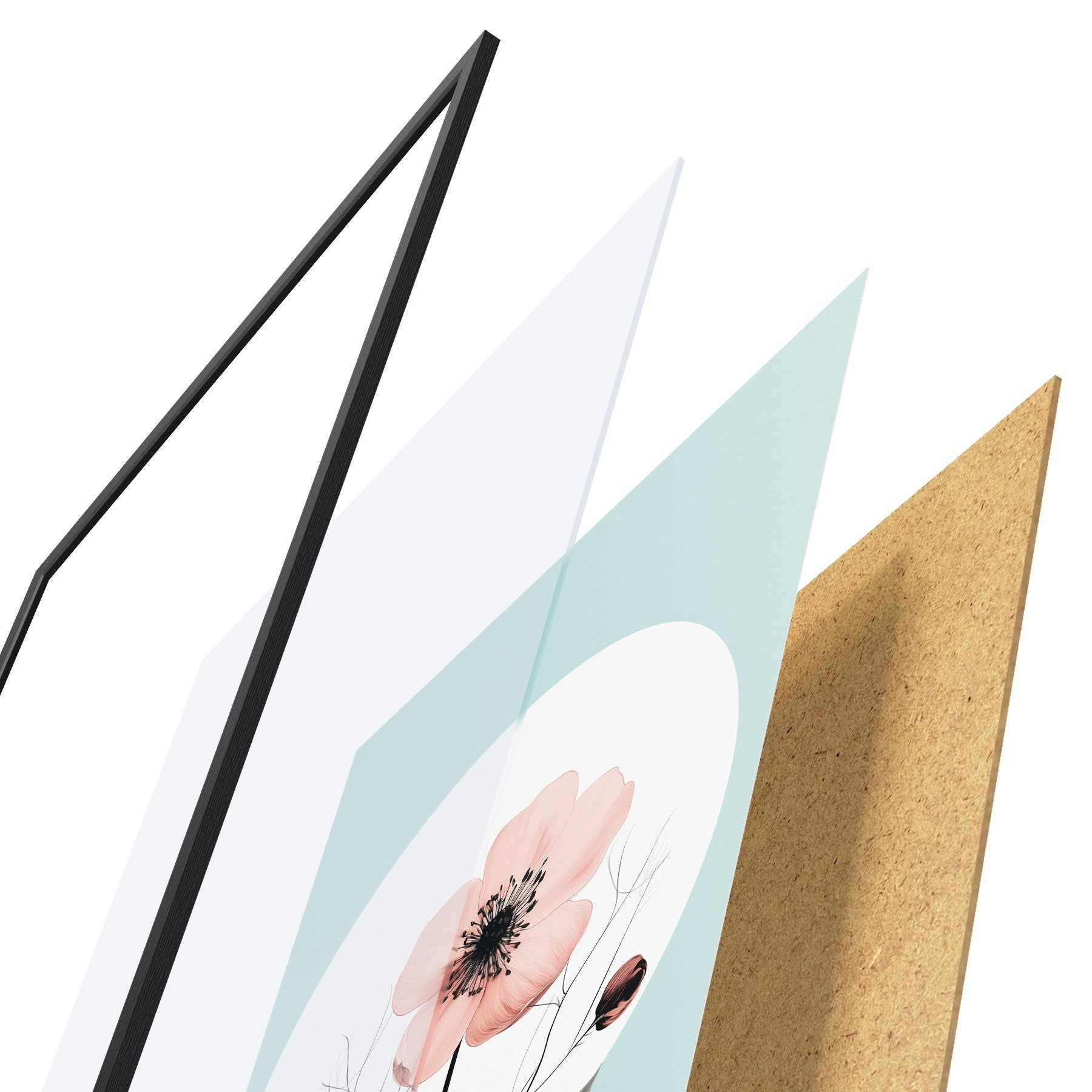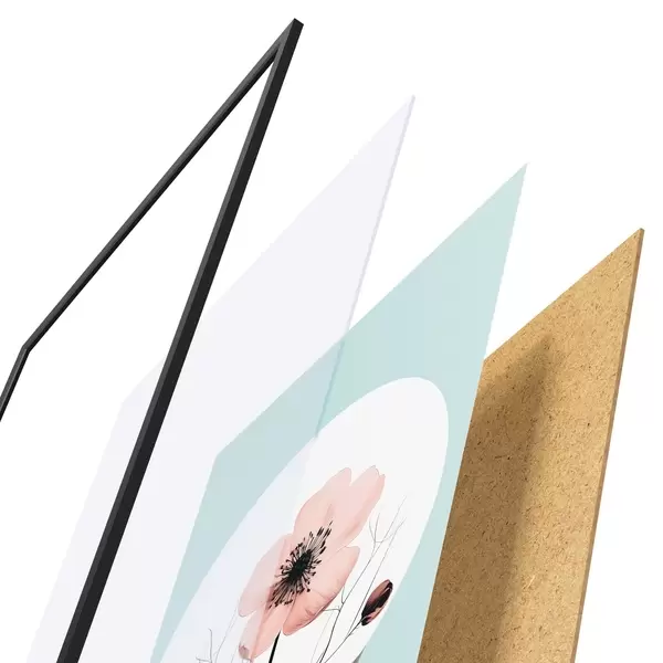 Plakatą sudaro rėmas, pleksiklas, atspausdintas vaizdas ir medžio drožlių plokštės pagrindas. Plakatą galima iš karto pakabinti ant sienos dėl kitoje pusėje esančių laikiklių.