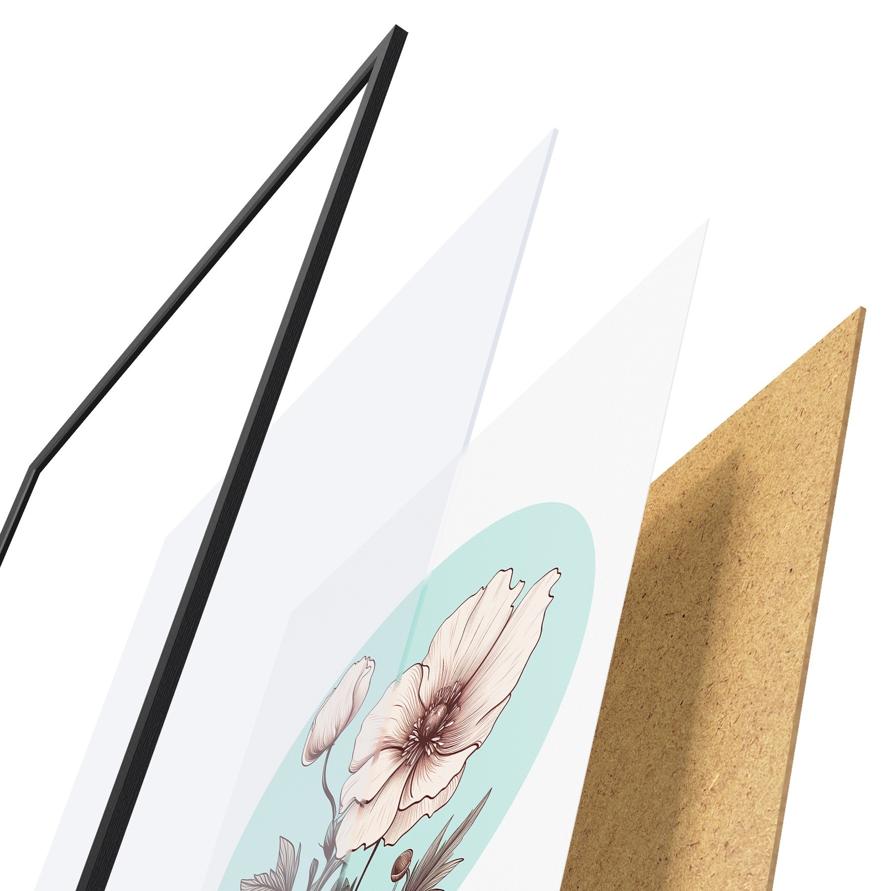 Plakatą sudaro rėmas, pleksiklas, atspausdintas vaizdas ir medžio drožlių plokštės pagrindas. Plakatą galima iš karto pakabinti ant sienos dėl kitoje pusėje esančių laikiklių.