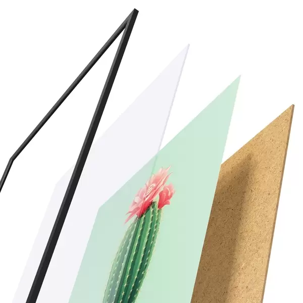 Plakatą sudaro rėmas, pleksiklas, atspausdintas vaizdas ir medžio drožlių plokštės pagrindas. Plakatą galima iš karto pakabinti ant sienos dėl kitoje pusėje esančių laikiklių.