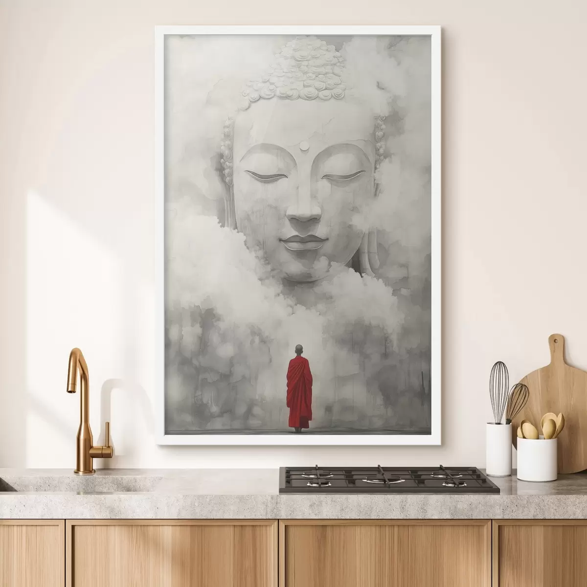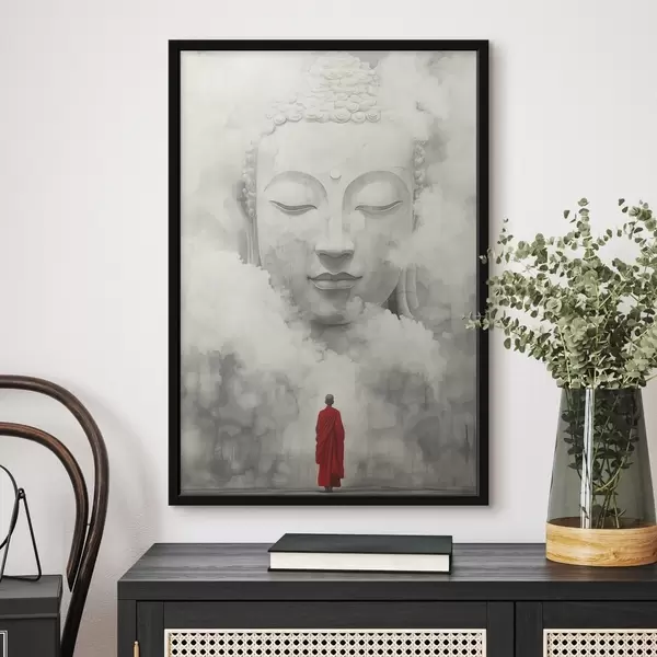 Plakatas Budizmas, vienuolis raudonu apsiaustu, rūkas, akvarelės stilius Ne f44007