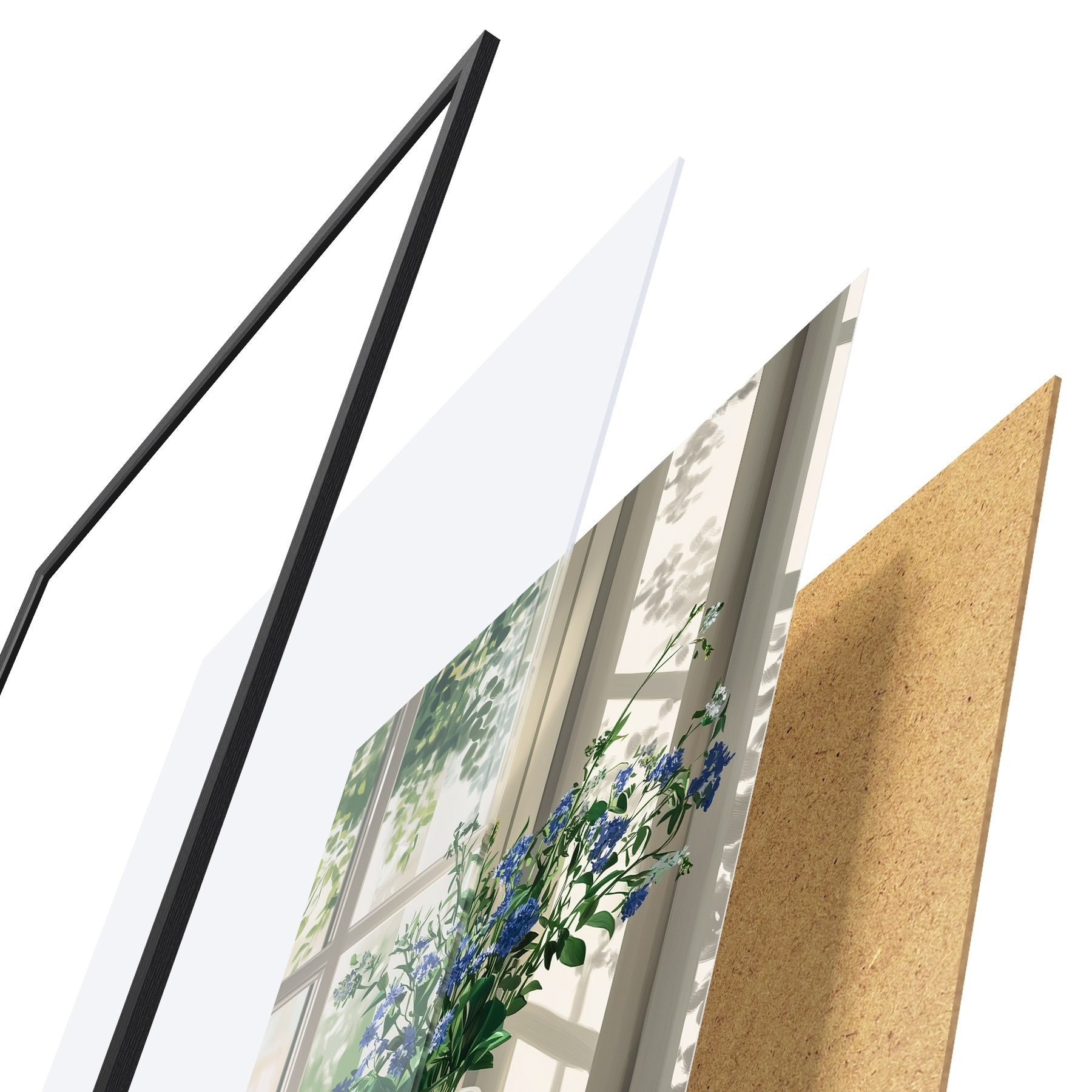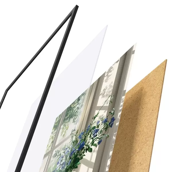 Plakatą sudaro rėmas, pleksiklas, atspausdintas vaizdas ir medžio drožlių plokštės pagrindas. Plakatą galima iš karto pakabinti ant sienos dėl kitoje pusėje esančių laikiklių.