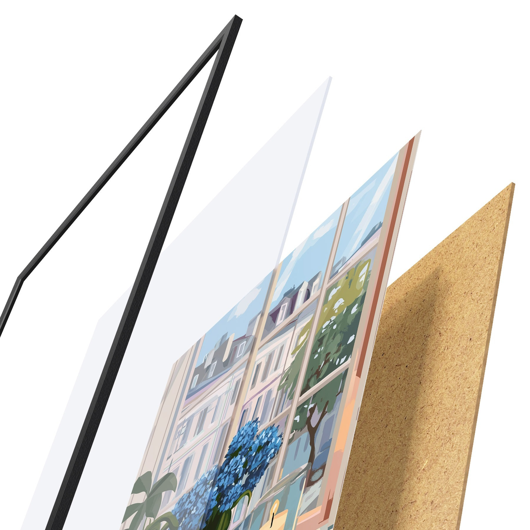 Plakatą sudaro rėmas, pleksiklas, atspausdintas vaizdas ir medžio drožlių plokštės pagrindas. Plakatą galima iš karto pakabinti ant sienos dėl kitoje pusėje esančių laikiklių.