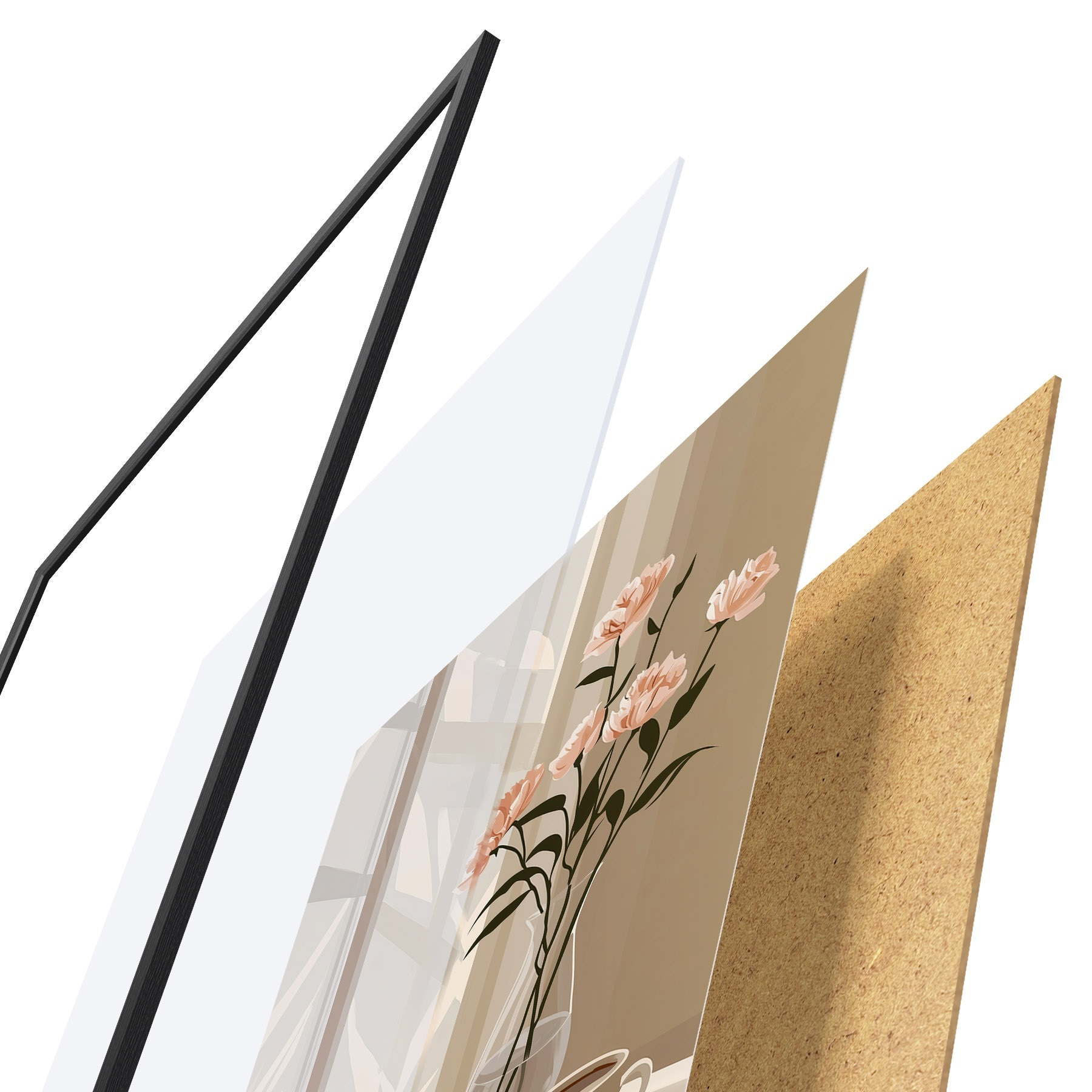 Plakatą sudaro rėmas, pleksiklas, atspausdintas vaizdas ir medžio drožlių plokštės pagrindas. Plakatą galima iš karto pakabinti ant sienos dėl kitoje pusėje esančių laikiklių.