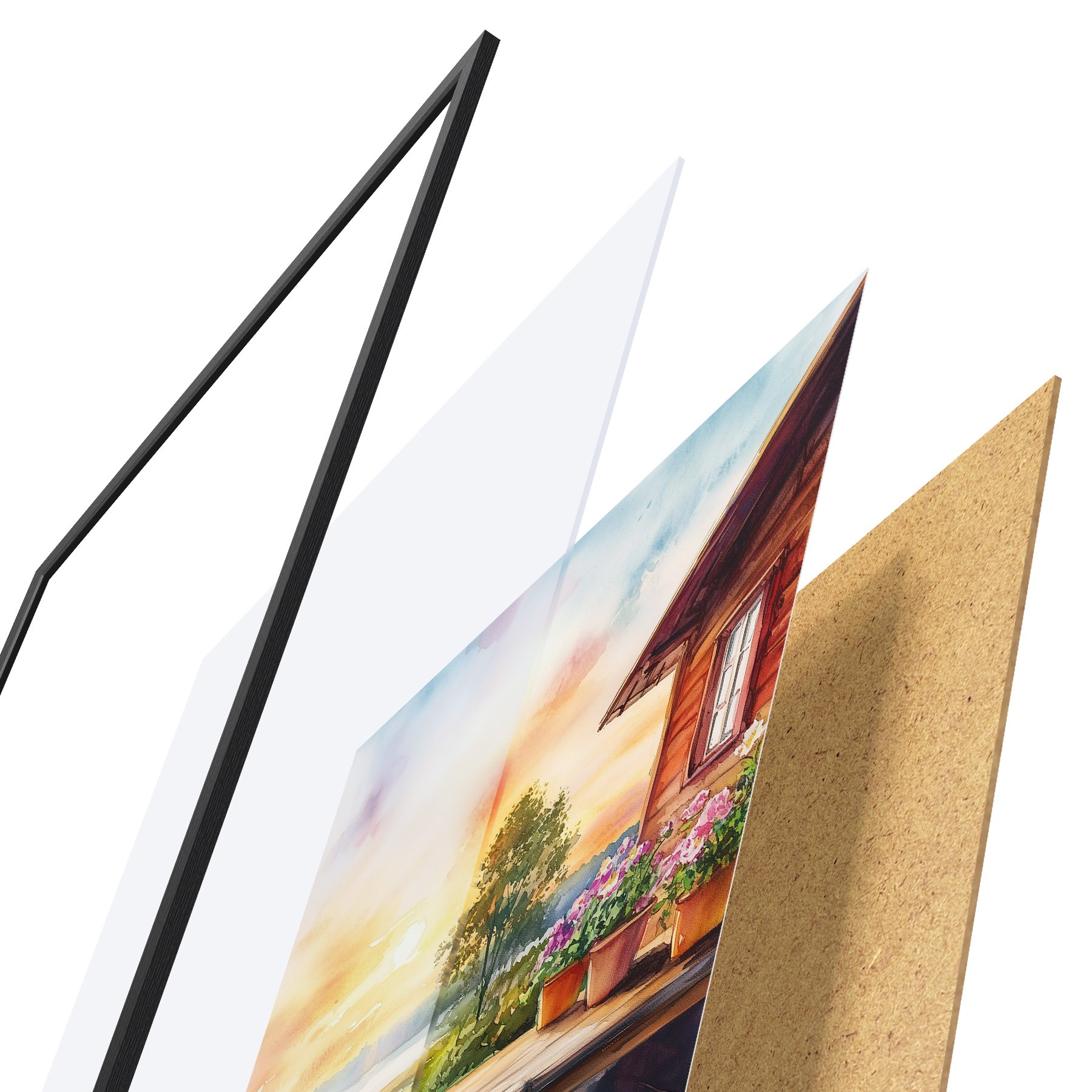 Plakatas Saulėlydžio spalvos, ūkis, akvarelės stilius, kaimiškas, vasaros gėlės Ne f44017