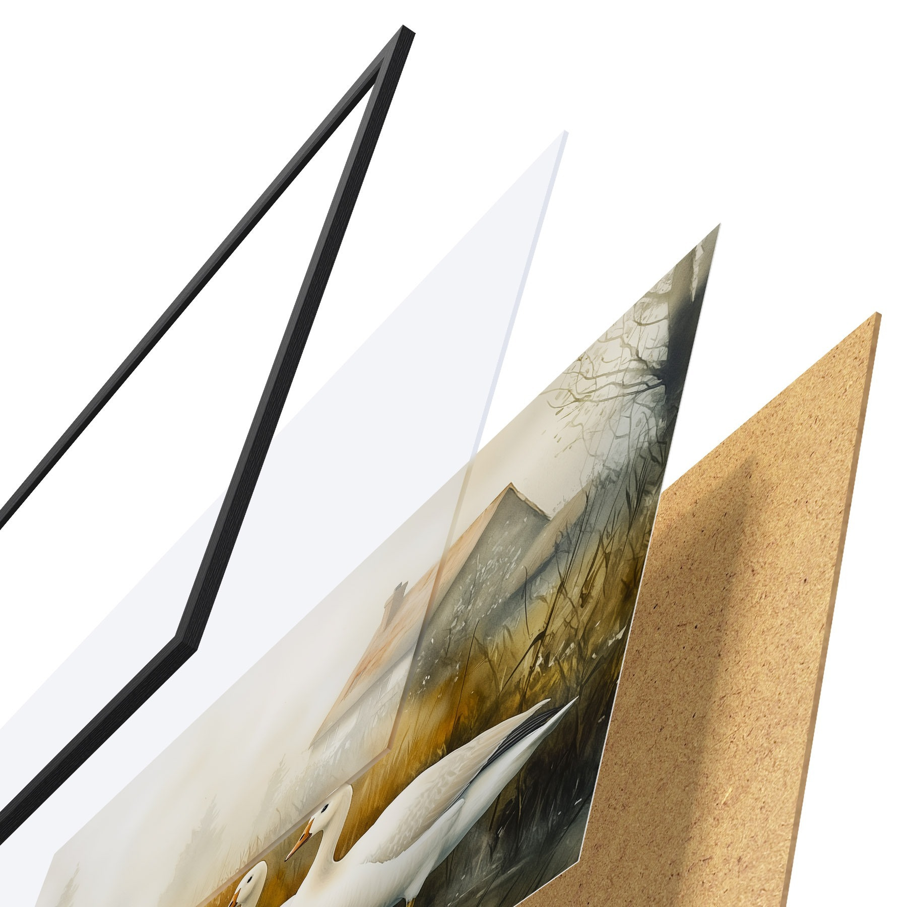 Plakatą sudaro rėmas, pleksiklas, atspausdintas vaizdas ir medžio drožlių plokštės pagrindas. Plakatą galima iš karto pakabinti ant sienos dėl kitoje pusėje esančių laikiklių.