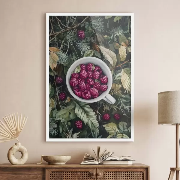 Plakatas Sultingos avietės miške, kaimiškas, lapai, akvarelės stilius Ne f44023