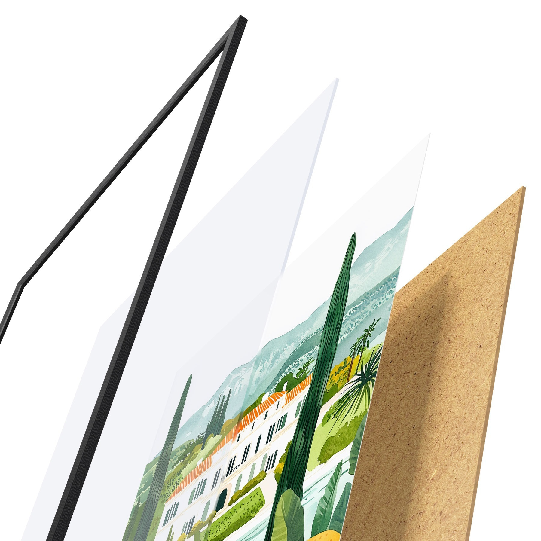 Plakatą sudaro rėmas, pleksiklas, atspausdintas vaizdas ir medžio drožlių plokštės pagrindas. Plakatą galima iš karto pakabinti ant sienos dėl kitoje pusėje esančių laikiklių.