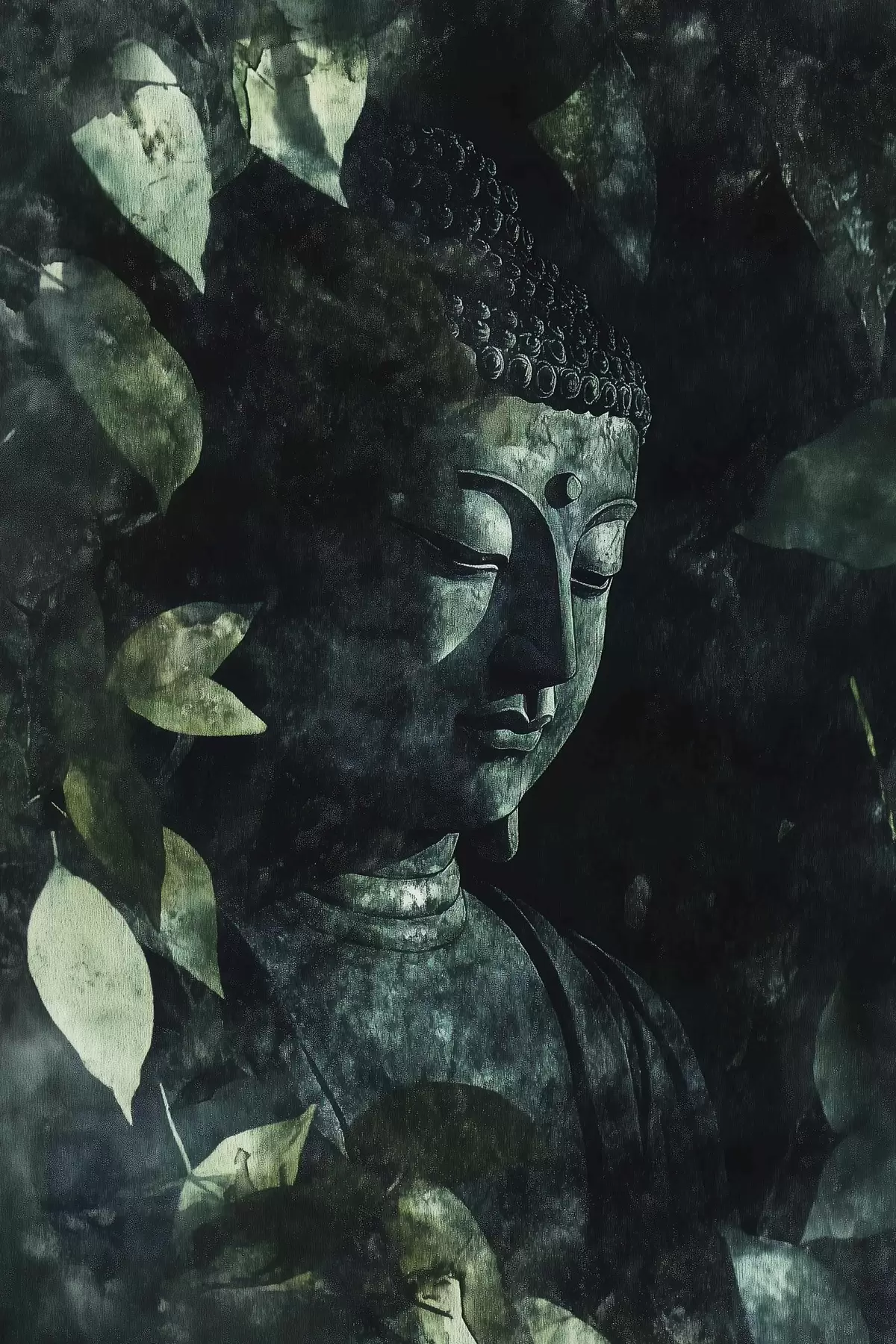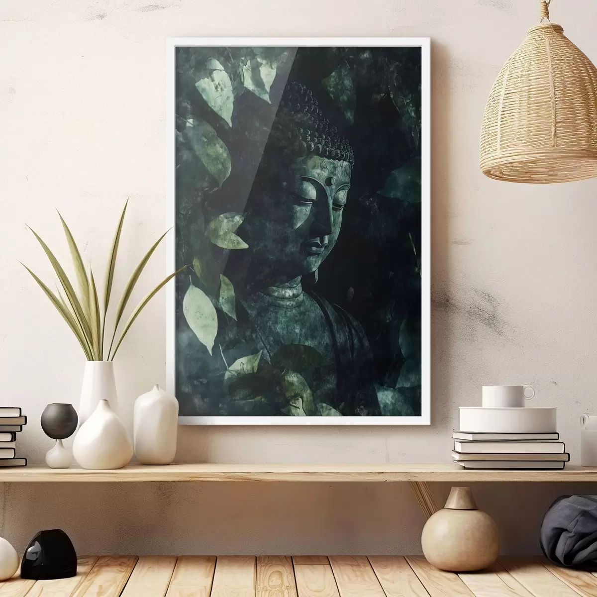 Plakatas Meditacinis Buda žaliuose lapuose, dvasinis f44029