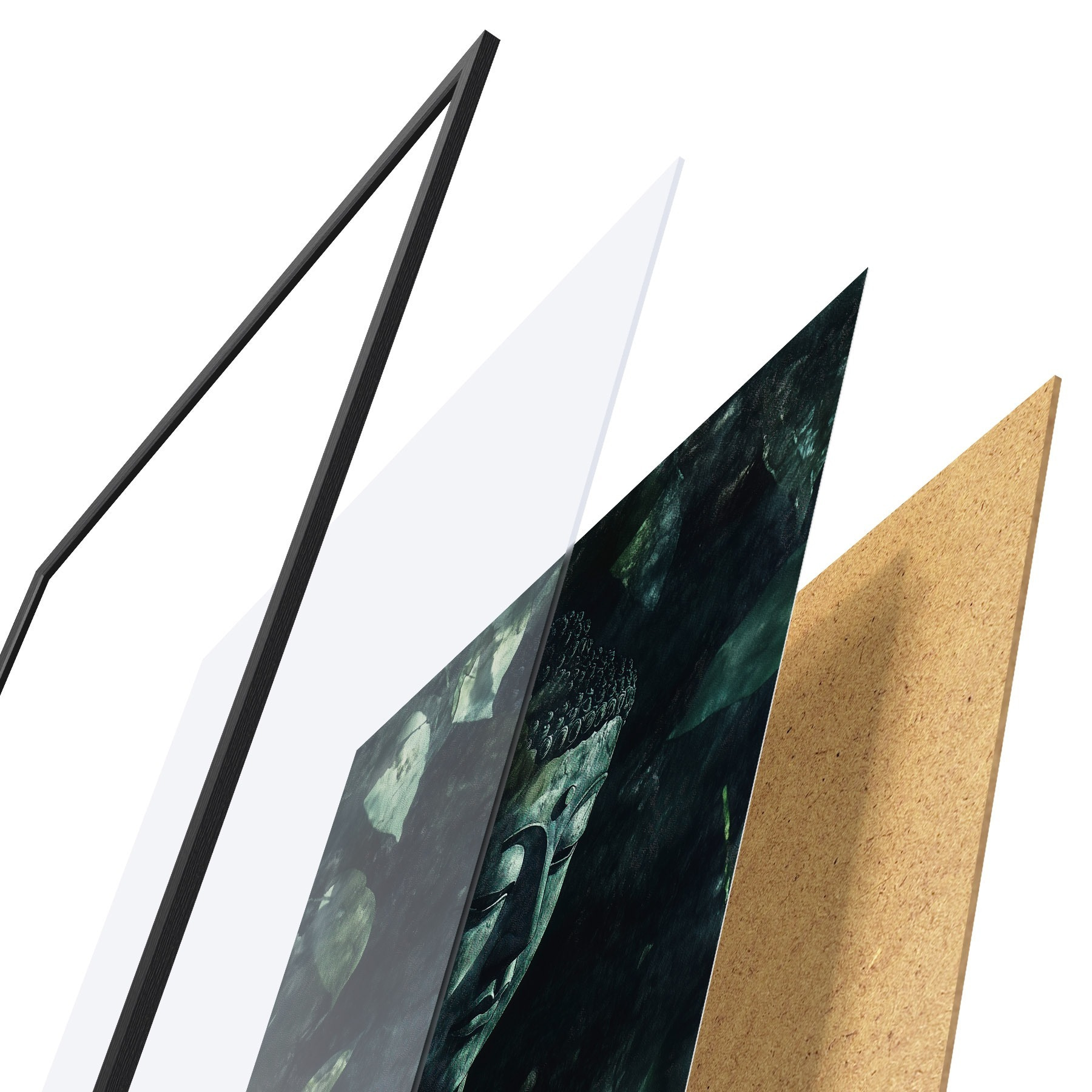 Plakatą sudaro rėmas, pleksiklas, atspausdintas vaizdas ir medžio drožlių plokštės pagrindas. Plakatą galima iš karto pakabinti ant sienos dėl kitoje pusėje esančių laikiklių.
