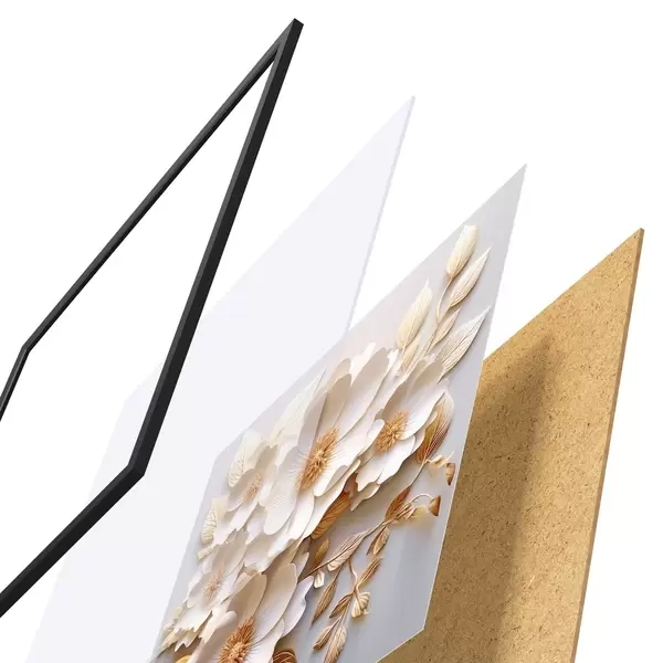 Plakatą sudaro rėmas, pleksiklas, atspausdintas vaizdas ir medžio drožlių plokštės pagrindas. Plakatą galima iš karto pakabinti ant sienos dėl kitoje pusėje esančių laikiklių.