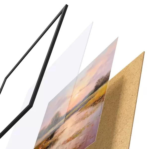 Plakatą sudaro rėmas, pleksiklas, atspausdintas vaizdas ir medžio drožlių plokštės pagrindas. Plakatą galima iš karto pakabinti ant sienos dėl kitoje pusėje esančių laikiklių.