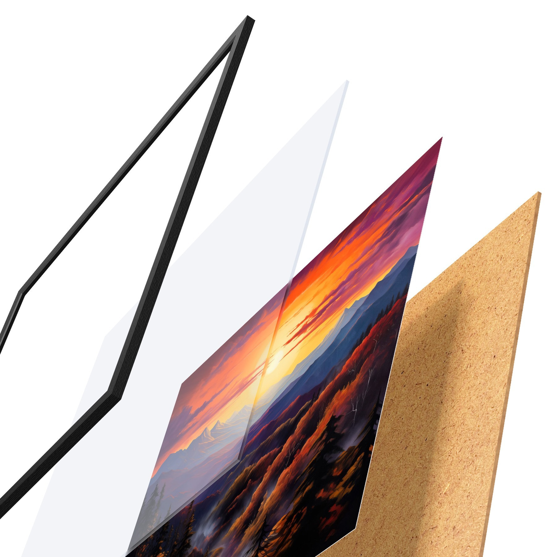 Plakatas Miškas ir kalnai saulėlydžio metu f44045